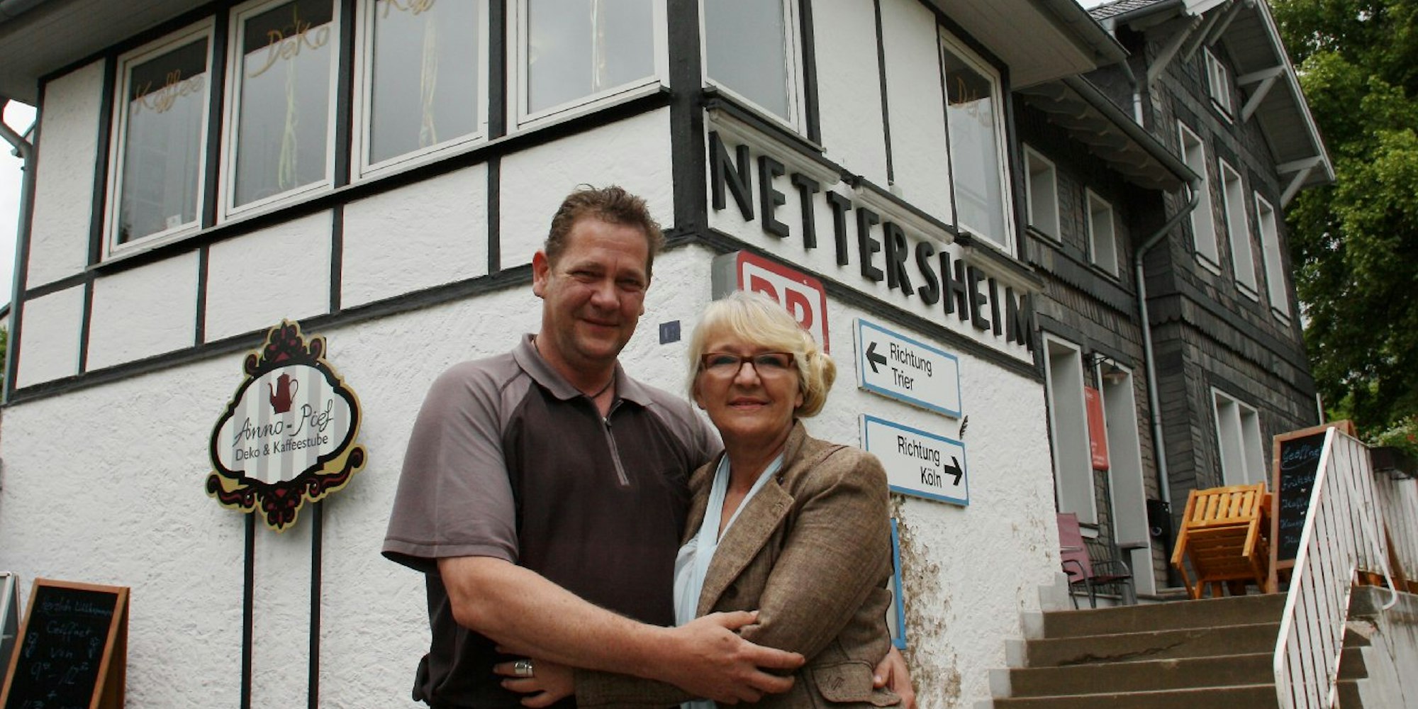 Monika Tondorf und Frank Dederichs sind stolz auf ihr neues Café „Anno Pief“ im Nettersheimer Bahnhof, das vor allem Gäste von auswärts anlockt.