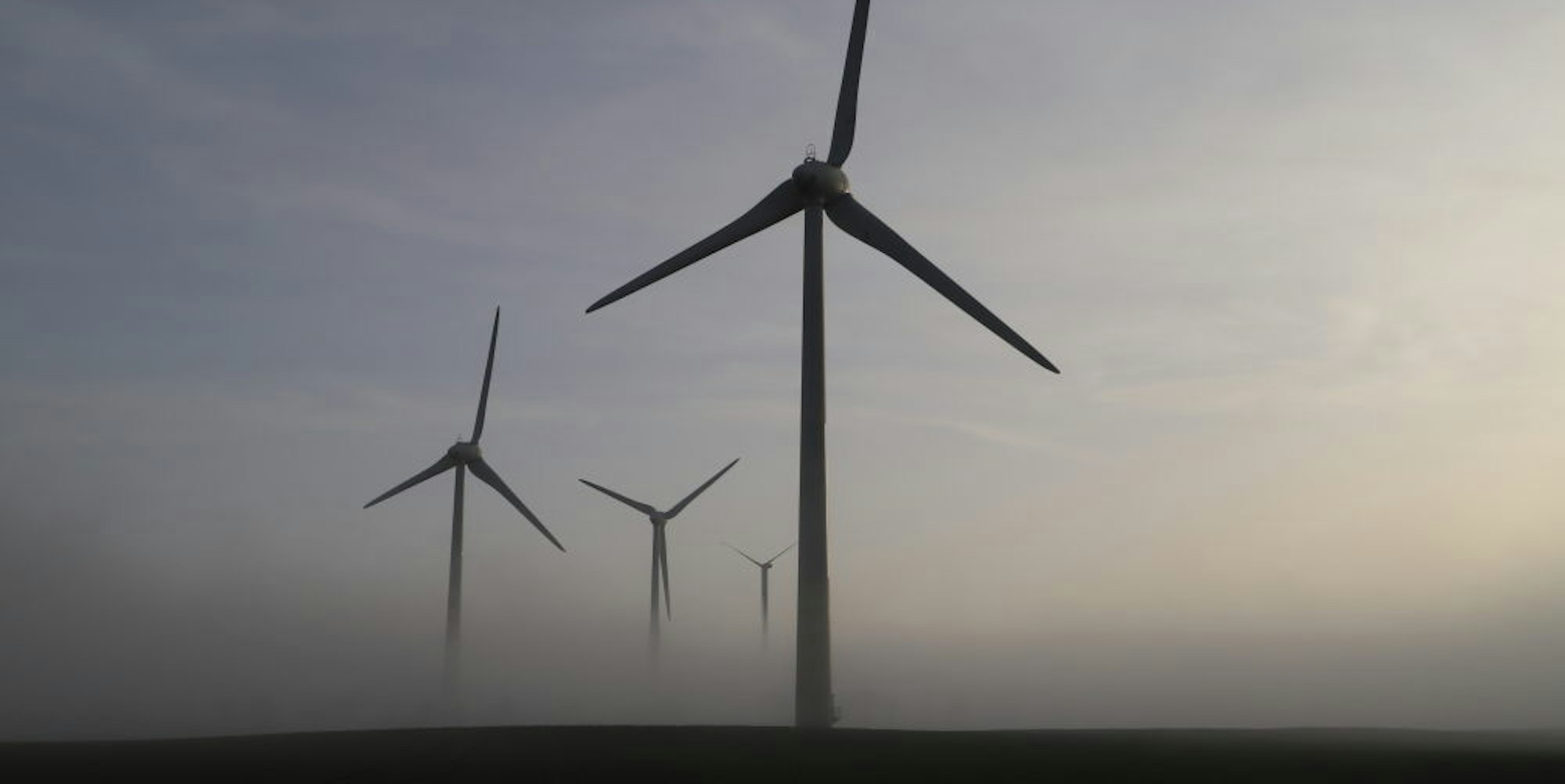 Im Nebel verschwindet das hintere Windrad, das an der falschen Stelle erreichtet wurde. Diese Anlage ist seit Jahren nicht in Betrieb und wird im kommenden Jahr abgerissen.