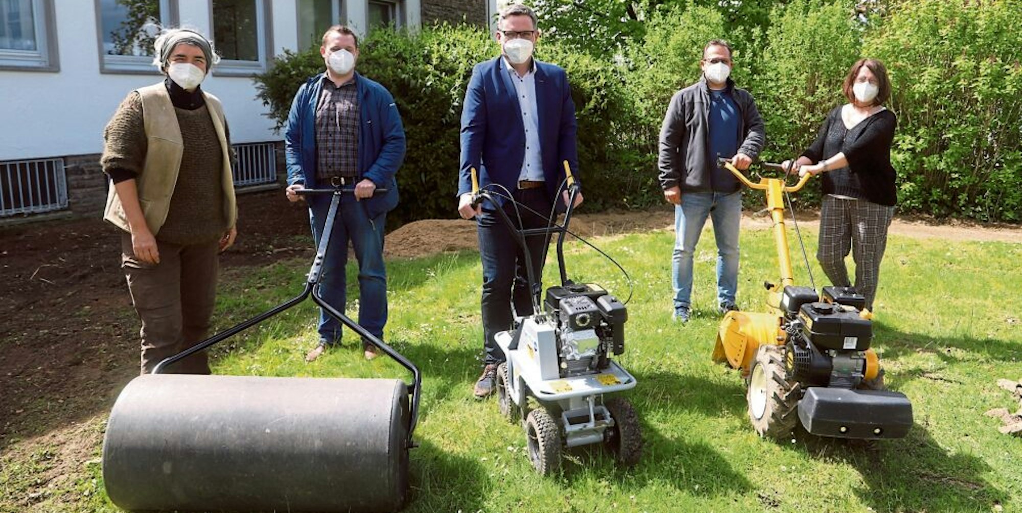 Werkzeuge für die Gartenumgestaltung wie Fräse und Walze sind im Literaturhaus Nettersheim abholbereit auf einem Anhänger gelagert. „Das einzige, was man braucht, ist eine Anhängerkupplung“, sagte Norbert Crump. In die Handhabung der Gerätschaften und die Anlage eines Wildblumenrasens werden die Ausleiher fachlich eingewiesen. Darüber hinaus gibt die Gemeinde jedem fünf Tüten Wildblumenrasen, die für 50 Quadratmeter reichen, mit dazu. Wenn mehr benötigt werde, wird das Saatgut zum Selbstkostenpreis abgegeben.
