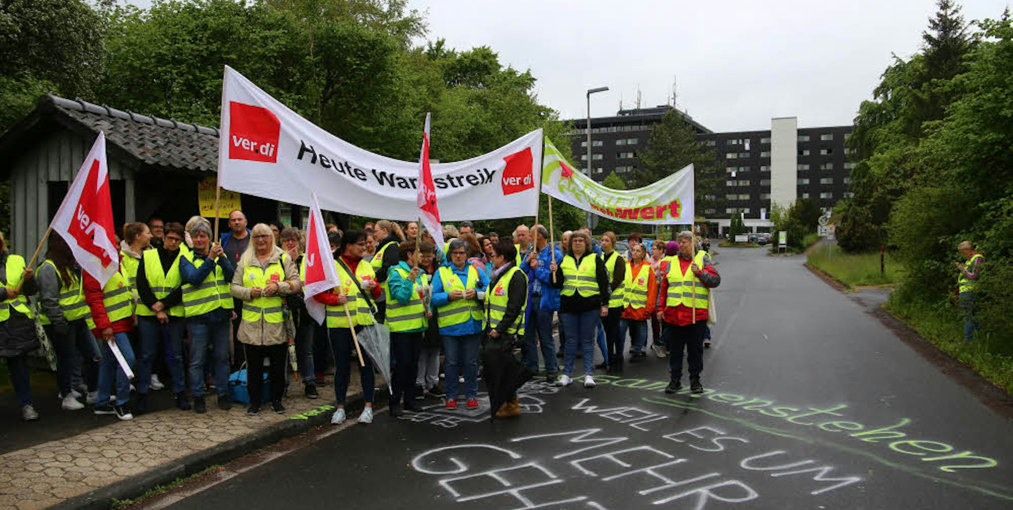 Etwa 100 Meter vor dem Klinikgebäude trafen sich die gewerkschaftlich organisierten Mitarbeiter, um sich in die Streiklisten einzutragen. 81, so teilte Gewerkschaftssekretär Arno Appelhoff mit, seien es gewesen, die sich in den Ausstand begeben hätten. Für diesen Dienstag ist eine Streikversammlung in der Gaststätte Kranz vorgesehen. Dann solle beraten werden, wie es weitergeht.