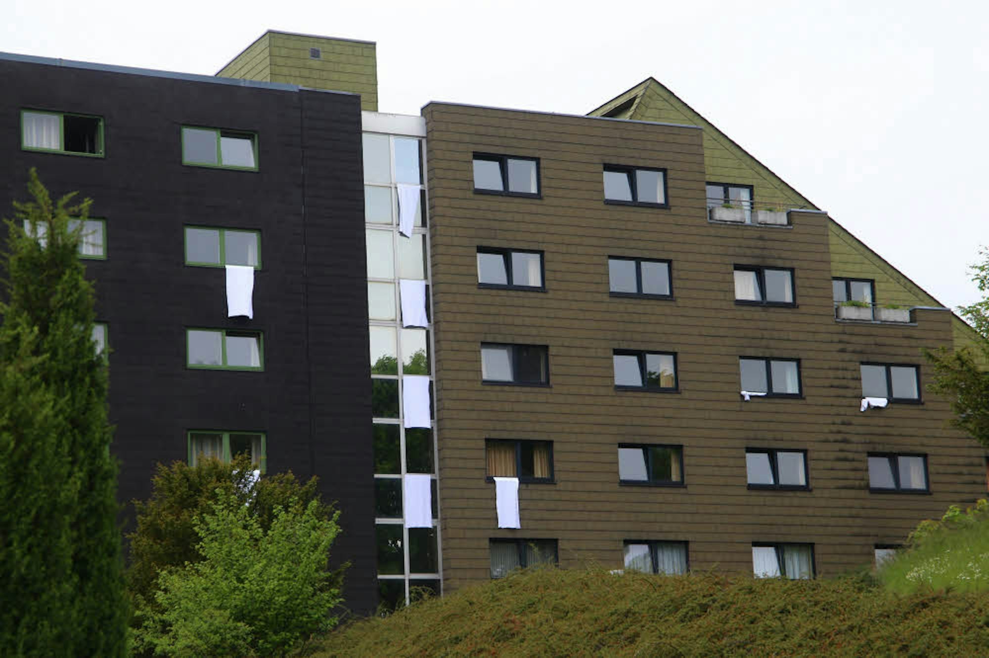 Als Zeichen der Solidarität mit den Streikenden haben einige Patienten weiße Handtücher aus ihren Fenstern gehängt.