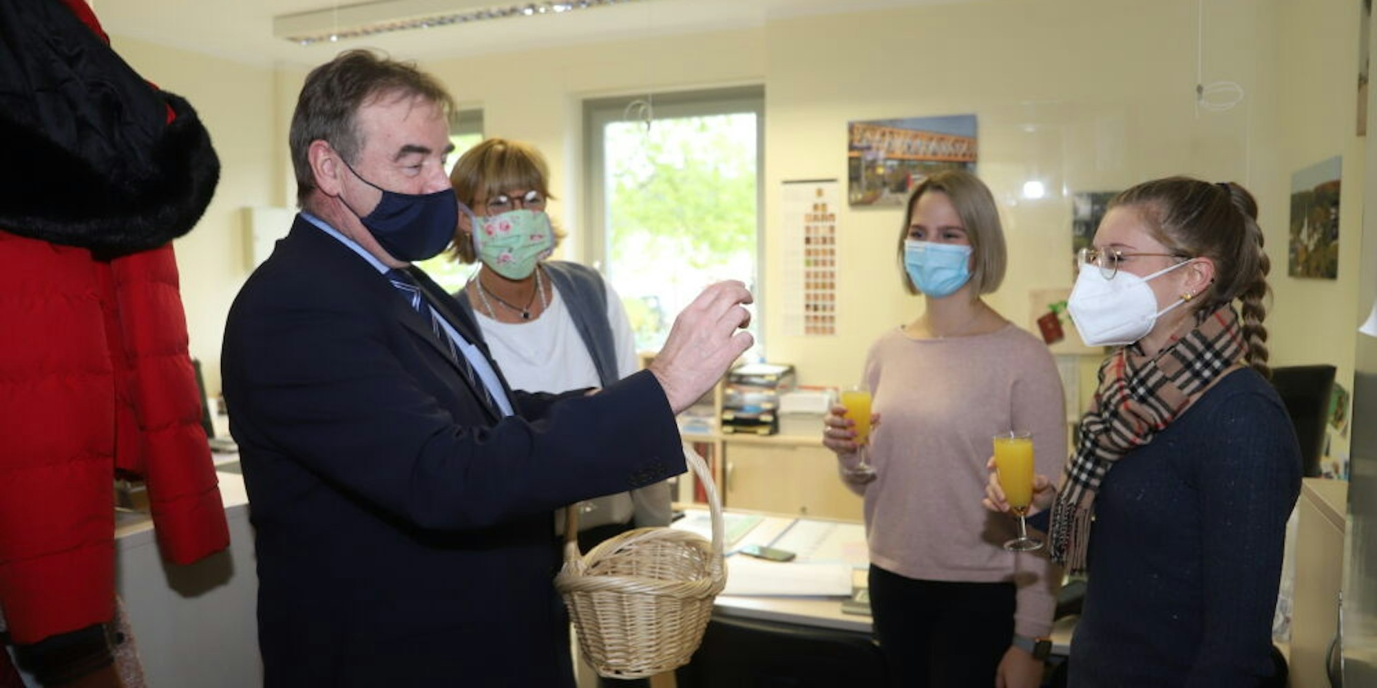 „Ich dachte, ich gebe dir um zwölf Uhr den Schlüssel, zeige dir die Garage und dann bin ich weg“, sagte er zu Crump. Doch im Rathaus war die Tour durch die Gemeinde noch nicht zu Ende. Hier hatten sich die Verwaltungsmitarbeiter in den Türen ihrer Büros versammelt und empfingen ihn mit einem Glas Sekt und einem Ständchen.
