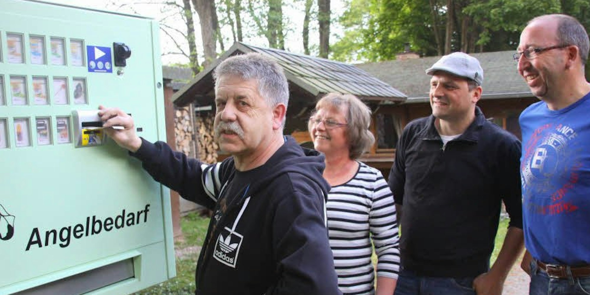 Nettersheim-Engelgau – Fernab der täglichen Aufregung, mitten im beschaulichen Tal des Genfbachs, liegen die Angelweiher des Angelvereins Engelgau. Kein Autogeräusch stört das Naturerleben, Ruhe und Frieden beherrschen die Szenerie. Umso erstaunlicher, dass hier, wo Karpfen und Zander sich gute Nacht sagen, eine etwas kuriose Einrichtung zu finden ist. Denn Engelgau kann sich nun damit rühmen, Heimstatt eines Automaten für Angelzubehör zu sein.