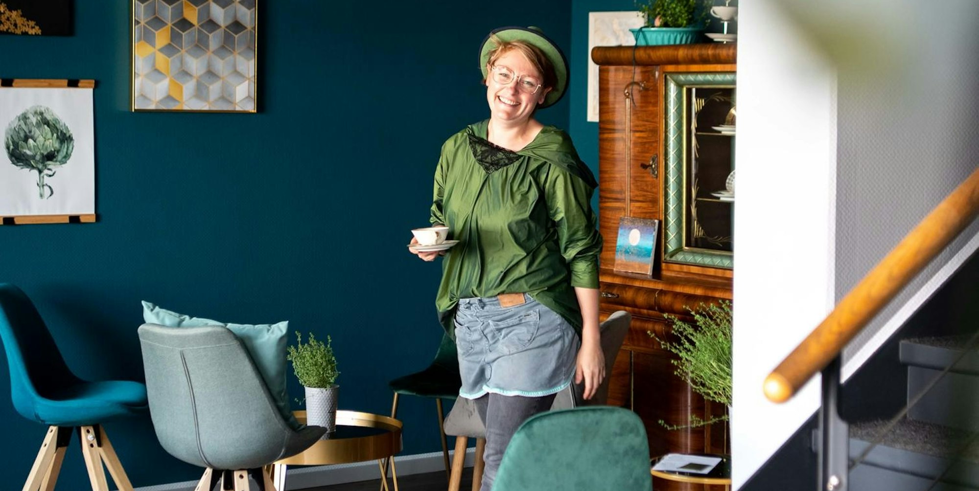 Vor der Eröffnung habe sie jede freie Minute in das Gebäude gesteckt, das Jahrzehnte lang ein Haushaltswarengeschäft war. Aus alten Kabelrollen machte die studierte Modedesignerin individuell gestaltete Tische. Der alte Schrank, der sich stilvoll ins Ambiente einfügt, sei ihr geschenkt worden, berichtet Wolbert. Und die Sammeltassen samt Geschirr stammen mitunter vom Trödelmarkt.