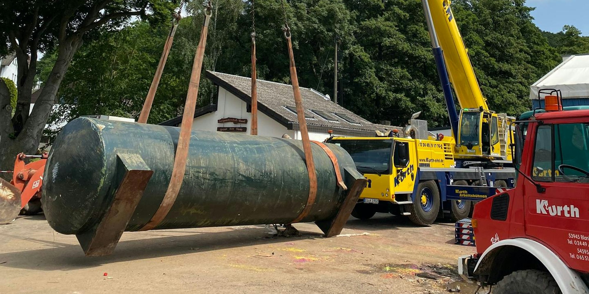 Das Kranunternehmen Kurth aus Blankenheim sicherte auch so manchen Öl-Tank nach der Flut.