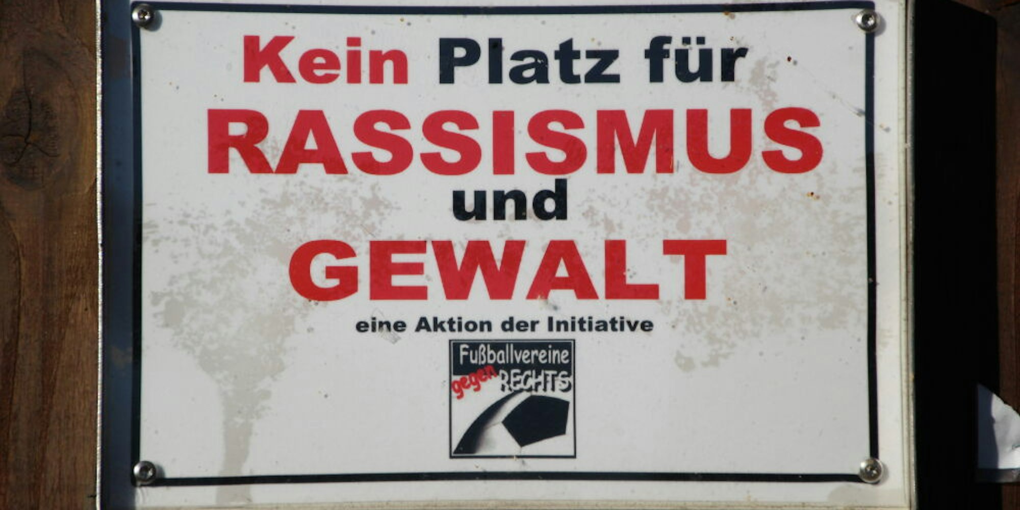 Ein Schild, ein Zeichen: Rassistische Beleidigungen gibt es dennoch auf den Sportplätzen – auch im Kreis Euskirchen.