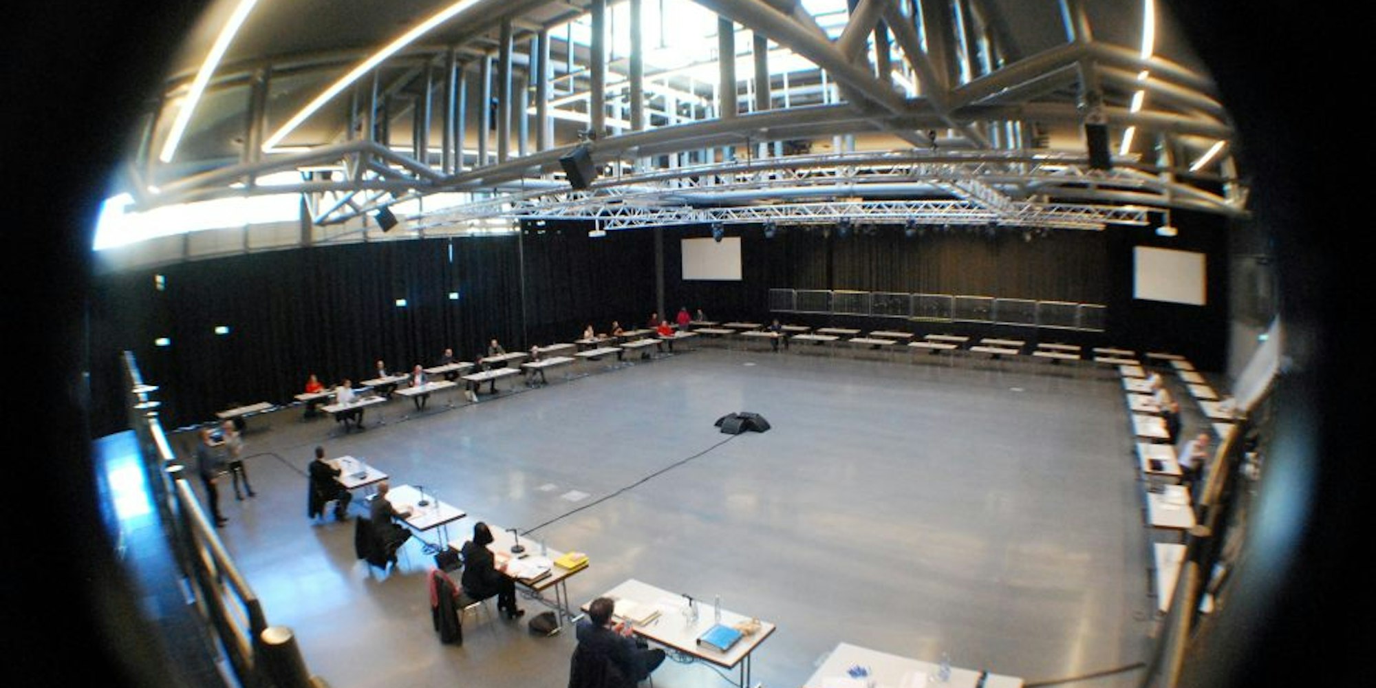 Die Einzeltische waren weit auseinandergerückt worden. Da zudem nur 28 der 49 Stadtverordneten an der denkwürdigen Sitzung teilnahmen, wirkte der Raum erst recht völlig überdimensioniert. Doch so sollte es ja sein, um die Ansteckungsgefahr so gering wie möglich zu halten.