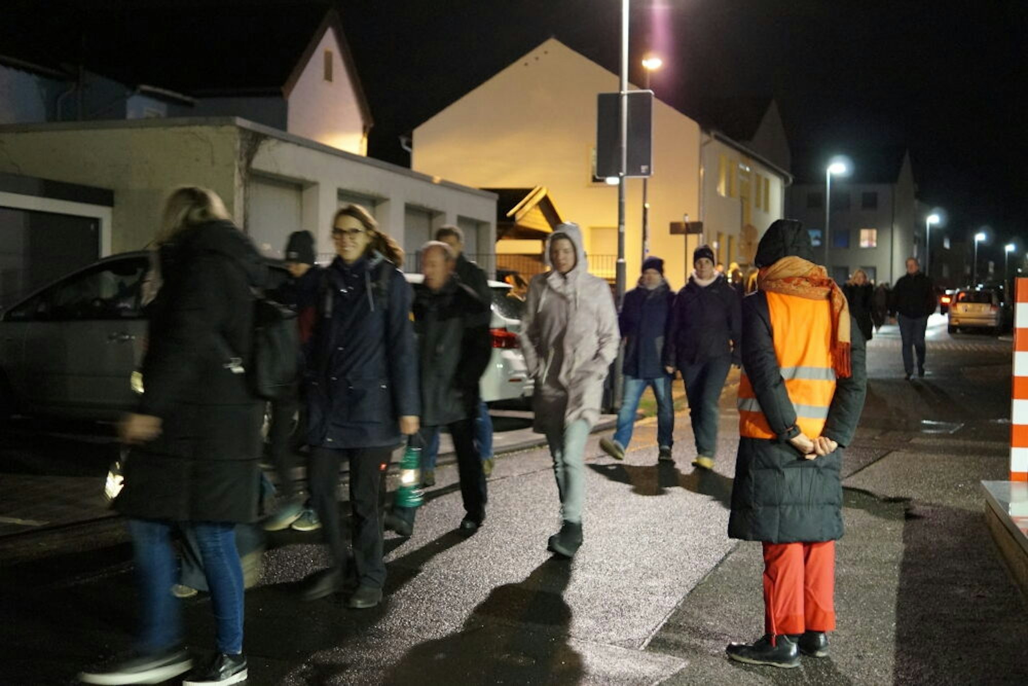 Er sei seit mehreren Wochen bei den Montagsspaziergängen durch Euskirchen dabei, sagt er: „Am Anfang waren wir nur zu Fünft.“ Und gegen was er und die anderen konkret spazieren? „Da hat jeder seine Meinung“, sagt er. Ein Frau mit Laterne ist aufmerksam geworden. „Ich gehe mit, weil ich nicht damit einverstanden bin, wie das mit dem Impfen läuft“, sagt sie. Wobei sie nicht grundsätzlich eine Impfgegnerin sei. Aber mit der Art, wie die Pandemie in Deutschland bekämpft werde, sei sie nicht einverstanden. „Das bringt die Menschen auseinander. Das bringt sogar Familien auseinander.“ Der Mann mit dem Hund pflichtet ihr bei. Deshalb könne er seine Schwester nicht mehr besuchen. Weil ihr Mann das nicht wolle. „Aber wir sind keine Rechten“, sagt die Frau mit der Laterne: „Schauen Sie sich die Teilnehmer an. Da finden Sie keine rechten Parolen. Die wollen wir hier auch nicht haben.“ Ob sie keine Gefahr sieht, dass rechte Gruppierungen aufsatteln? Ja, durchaus. „Aber dann werde ich denen sagen, dass wir sie hier nicht dabei haben wollen.“ Die Frau und der Mann bleiben den Journalisten gegenüber anonym. Nicht, weil sie nicht namentlich ihre Meinung vertreten wollen. Aber die Polizei forscht nach den Organisatoren des Spaziergangs, der ja nicht angemeldet ist.