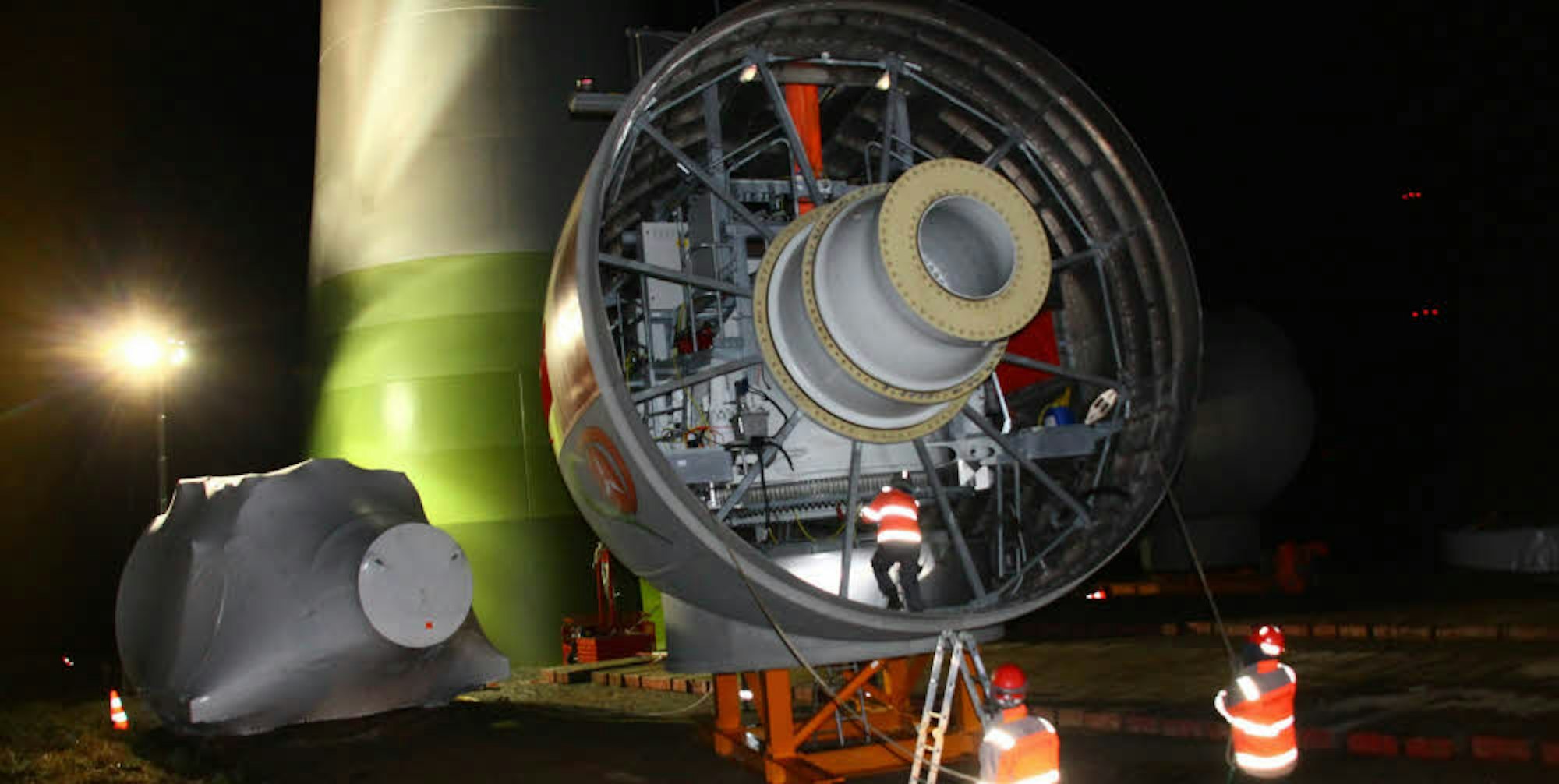 Um die neuen Generatoren einzubauen, wurden 2016 die Maschinenhäuser von fünf Windrädern demontiert zu Boden gelassen. Ein Generatorentausch in 150 Metern Höhe hätte nicht stattfinden können.
