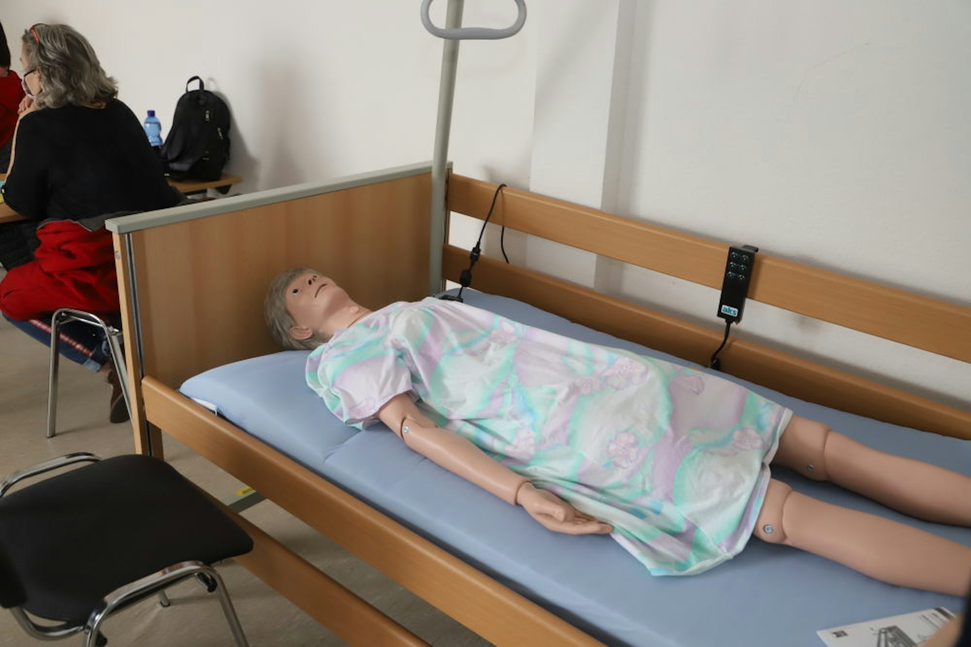 Handgriffe, die bei der Pflege unerlässlich sind, üben die Teilnehmerinnen unter anderem an der Puppe „Hans-Josef“.