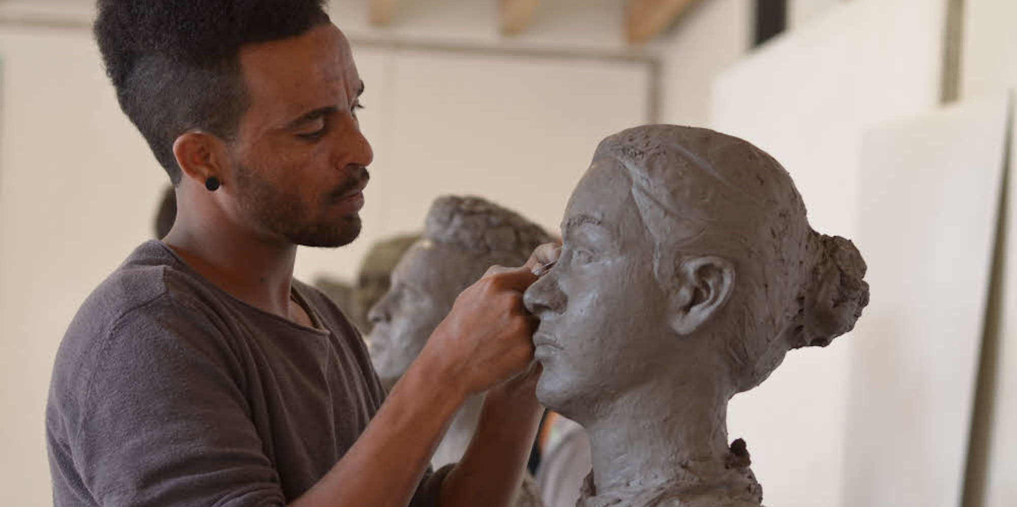 Brhane Tewelde bewies auch bei der Arbeit mit Ton im Porträt-Modellierkurs sein Talent.