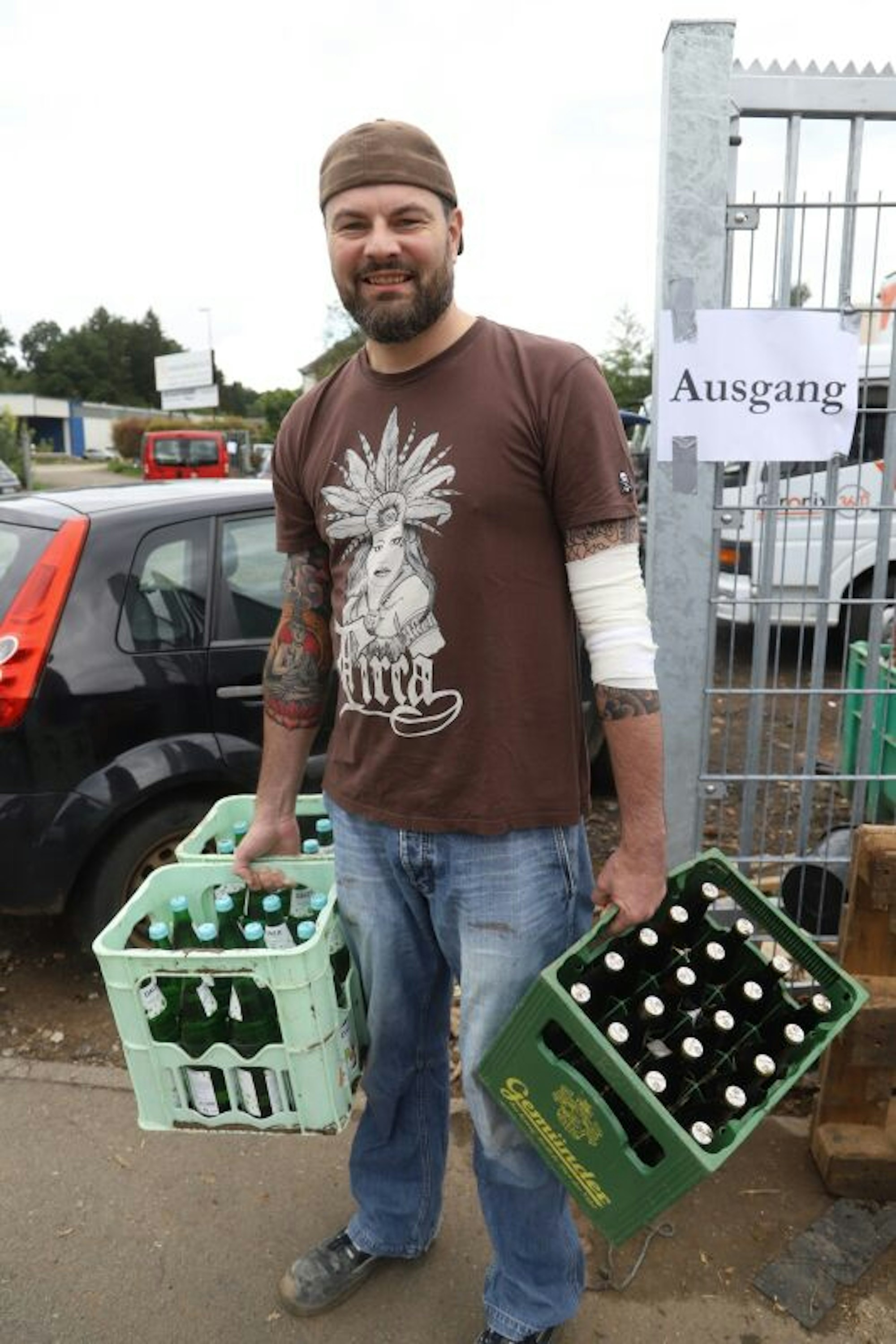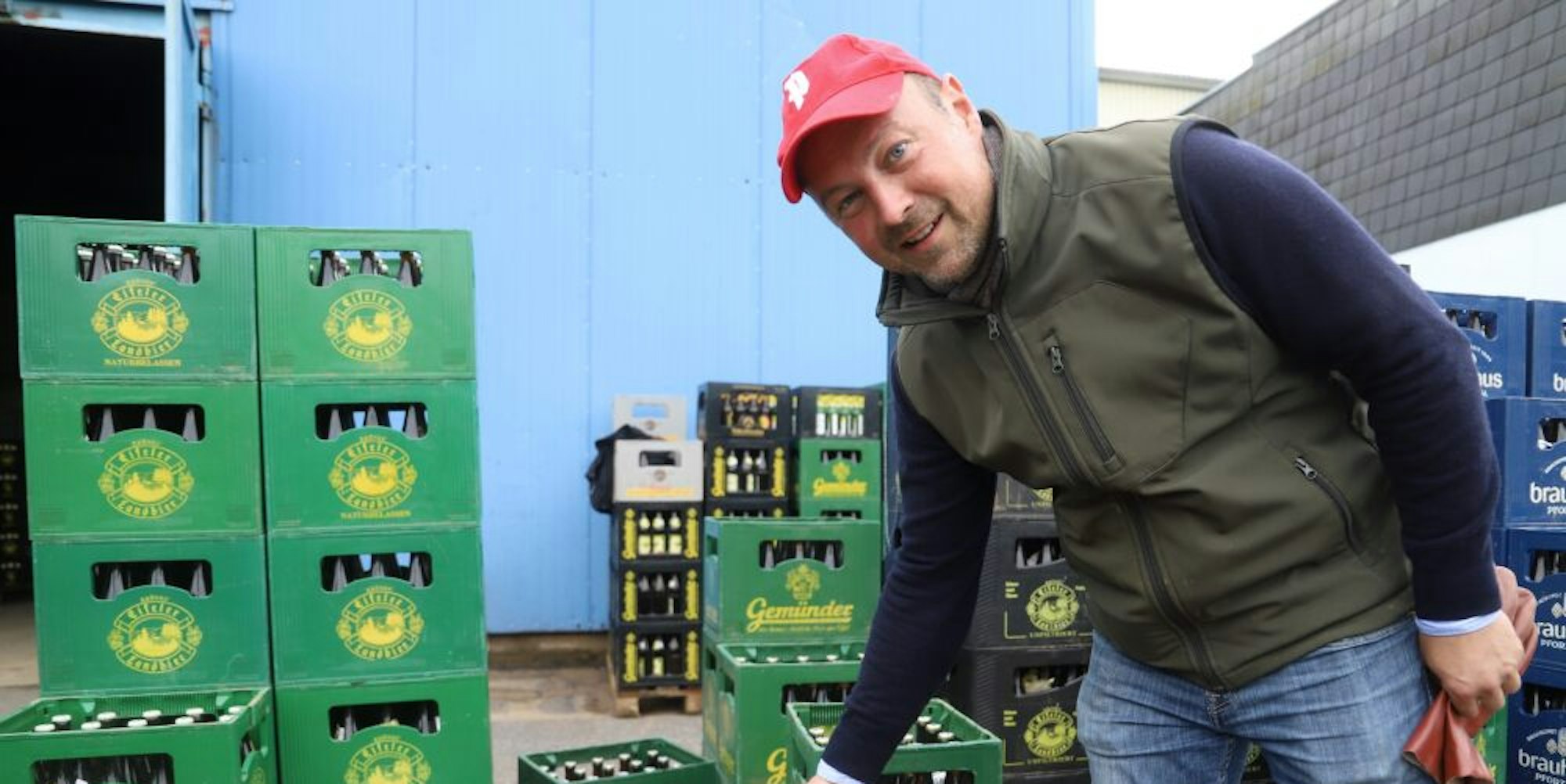 Verkaufen kann Geschäftsführer Johannes Schweizer das Bier aufgrund der Flutschäden nicht mehr, deswegen kam er auf die Idee, die Kisten gegen eine Spende abzugeben.