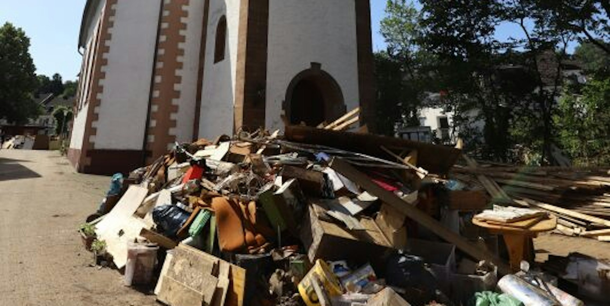 Besonders ernst ist die Situation in Gemünd im ältesten evangelischen Kirchengebäude der Region. „Die Kirche ist am meisten getroffen und kann nicht entlüftet werden“, so Schumacher. Die Fenster seien nicht zu öffnen, weil die Stellmotoren in dem durchnässten Gebäude keinen Strom haben. Die Türen zu öffnen sei keine Option: „Das ist ein Spagat zwischen Lüftung und möglichem Vandalismus.“