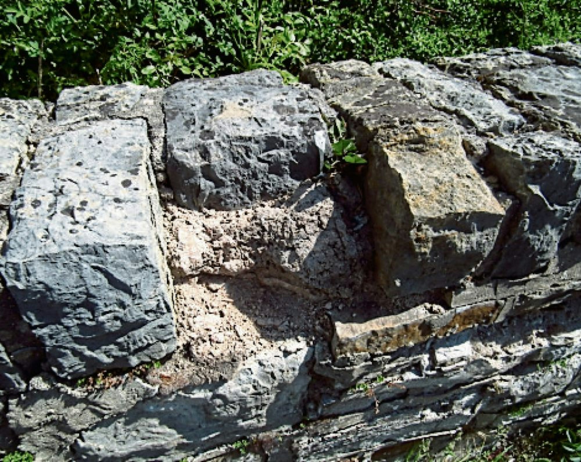 An mehreren Stellen sind schon Steine herausgebrochen.