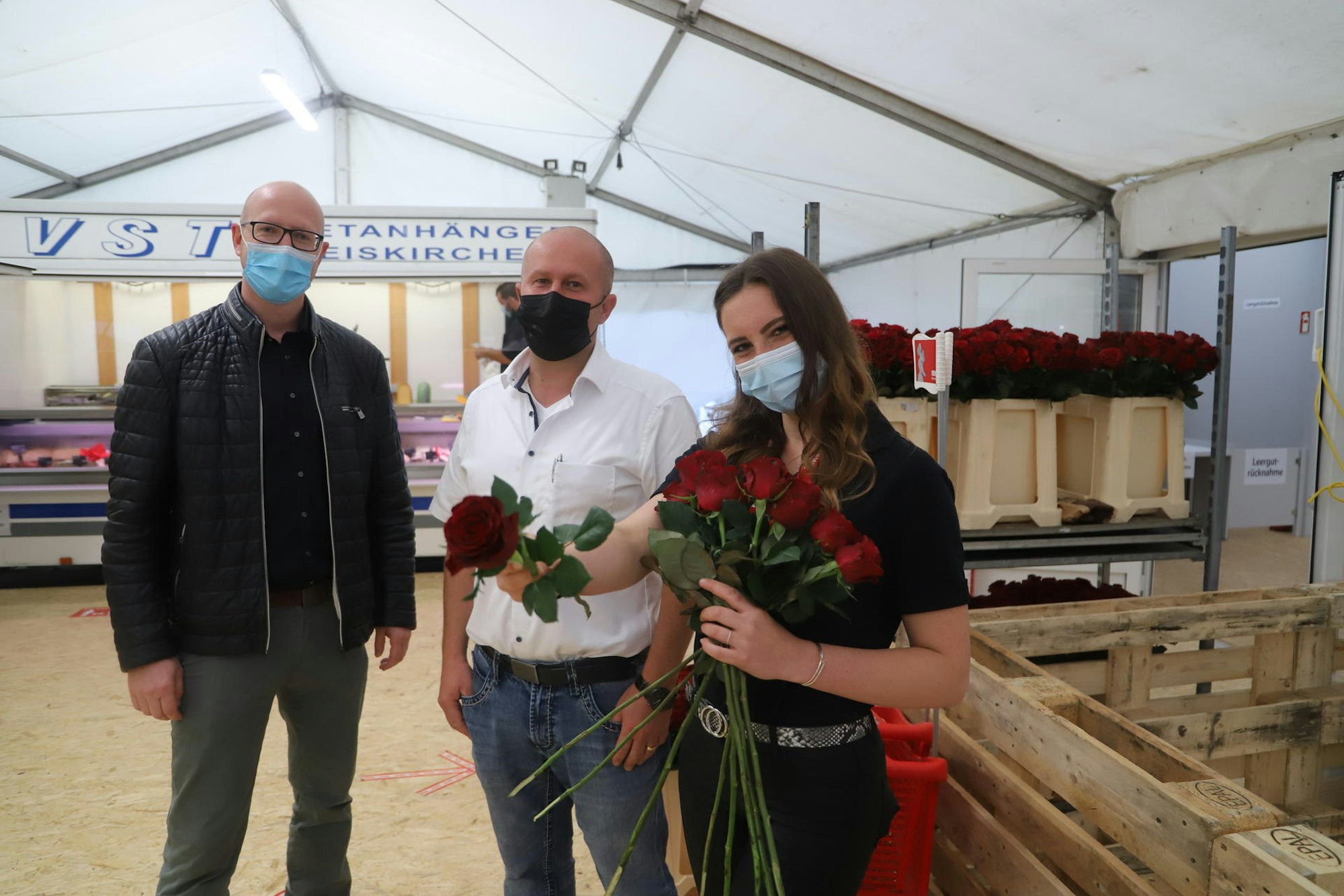 Mit einer Rose begrüßte Sandra Lange die Kunden, Michael Rieck (M.) und Ingo Pfennings freuten sich über die Eröffnung.