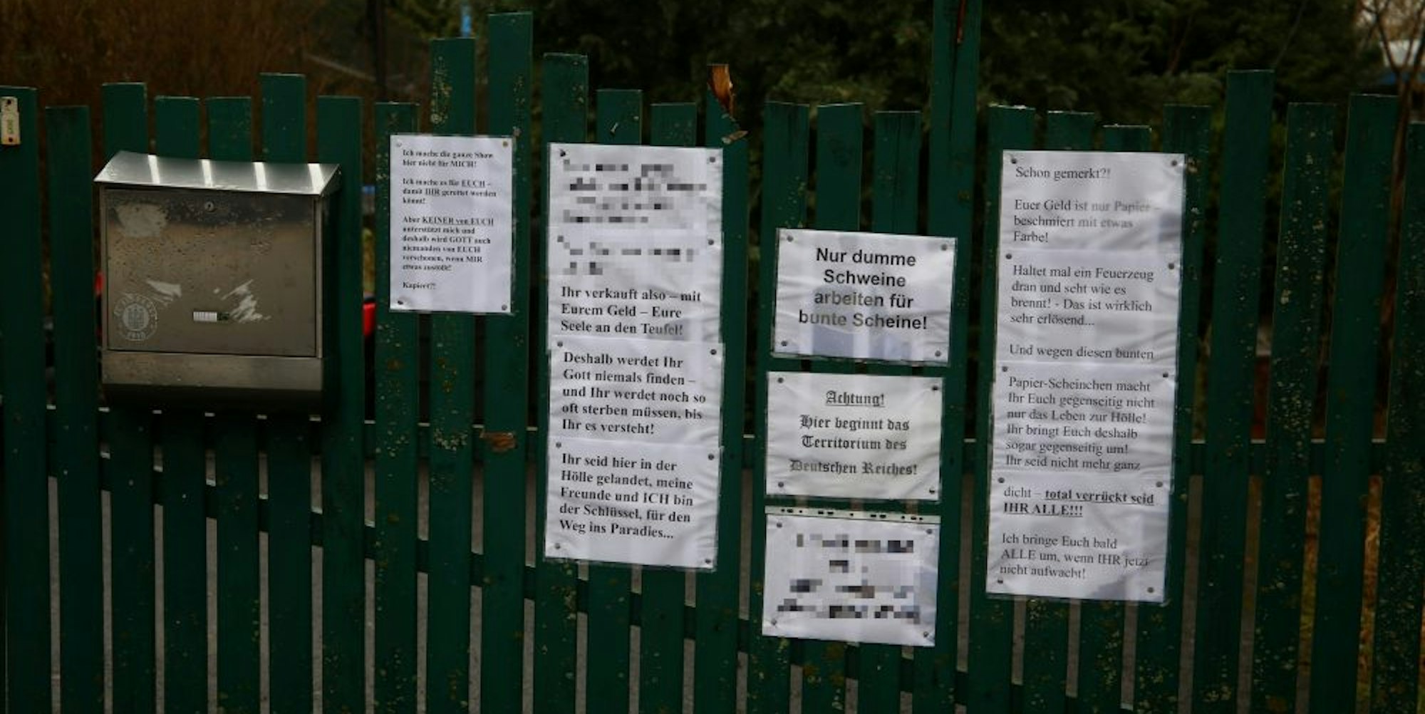 Diese Plakate hingen im März 2019 an der damaligen Anschrift des Beschuldigten.