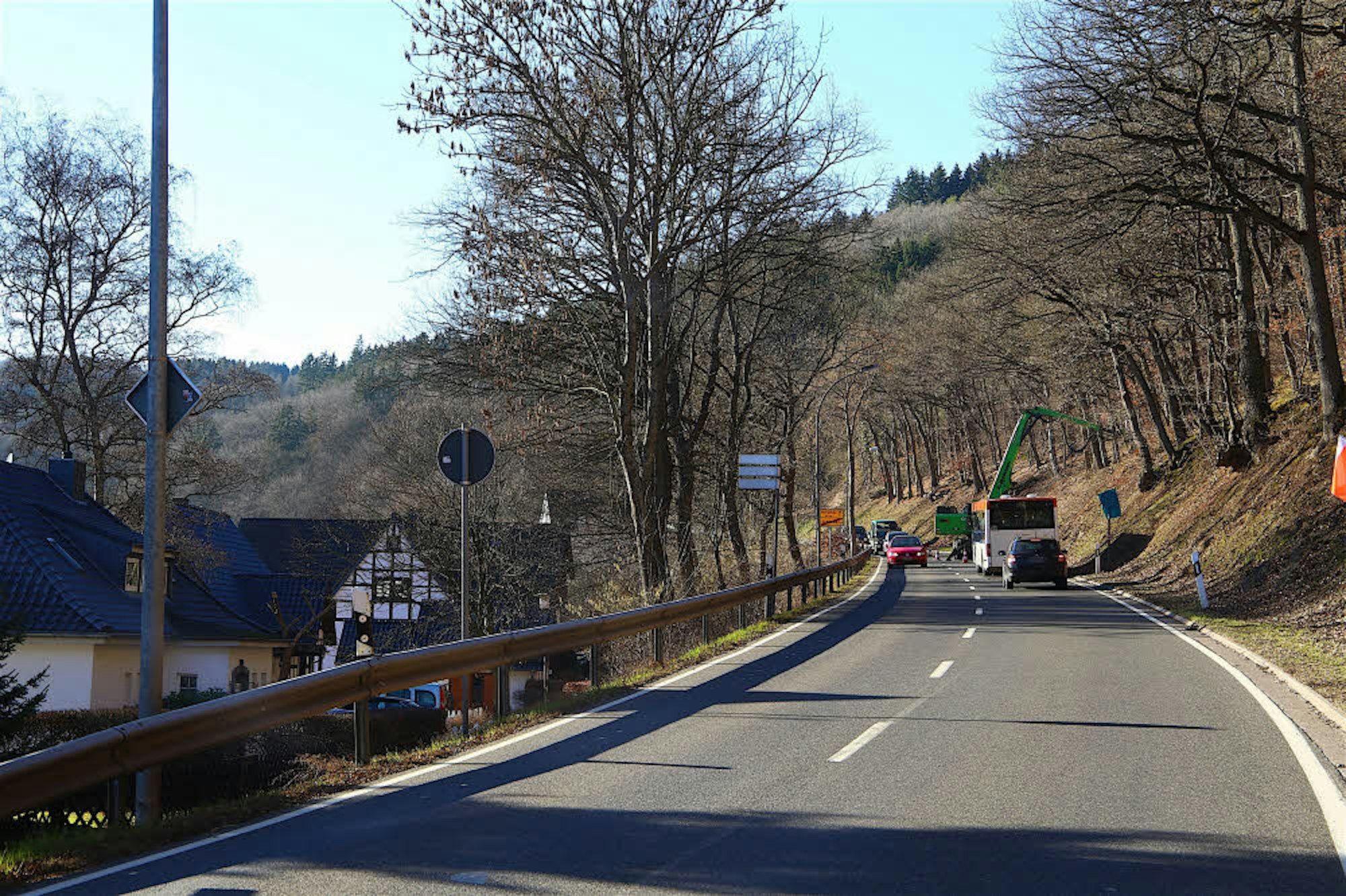 Bis zum Stichtag 1. März nutzte der Landesbetrieb Straßen NRW mit den Straßenmeistereien die Zeit, um die Bäume am Straßenrand auf ihre Stand- und Verkehrssicherheit zu überprüfen und gegebenenfalls entfernen zu lassen. So geschehen zum Beispiel an der B266 zwischen der Wendeplatte und Gemünd und an der B51 bei Dahlem. „Dabei ist es nicht so, dass wir an dem Holzeinschlag verdienen“, betonte Bernd Aulmann, Sprecher des Landesbetriebs in Euskirchen. Ganz im Gegenteil seien die Verkehrssicherungsmaßnahmen ein erheblicher Kostenfaktor.