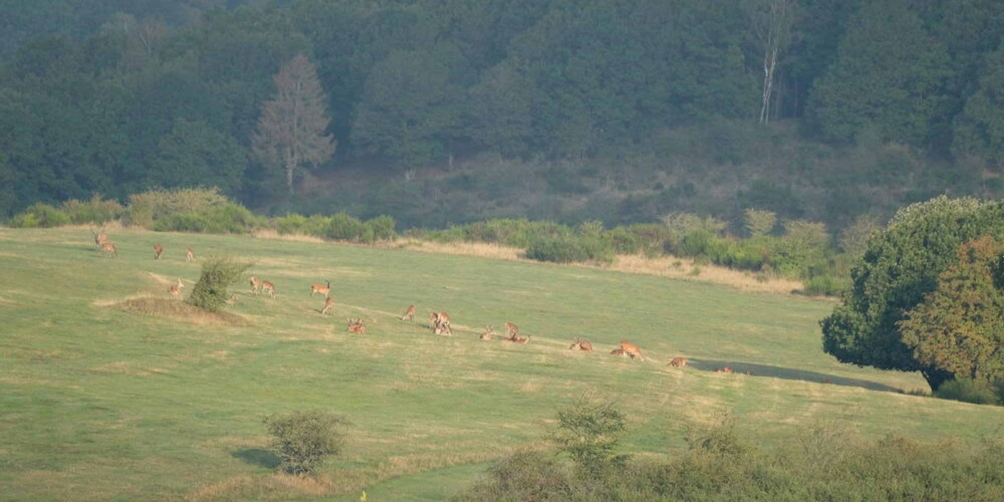 Die Brautschau der Rothirsche lässt sich im Nationalpark Eifel von einer Empore aus beobachten. Die Nationalparkverwaltung mahnt aber, dass Rudelbildung nur bei den Tieren erlaubt sei, nicht bei den Menschen.