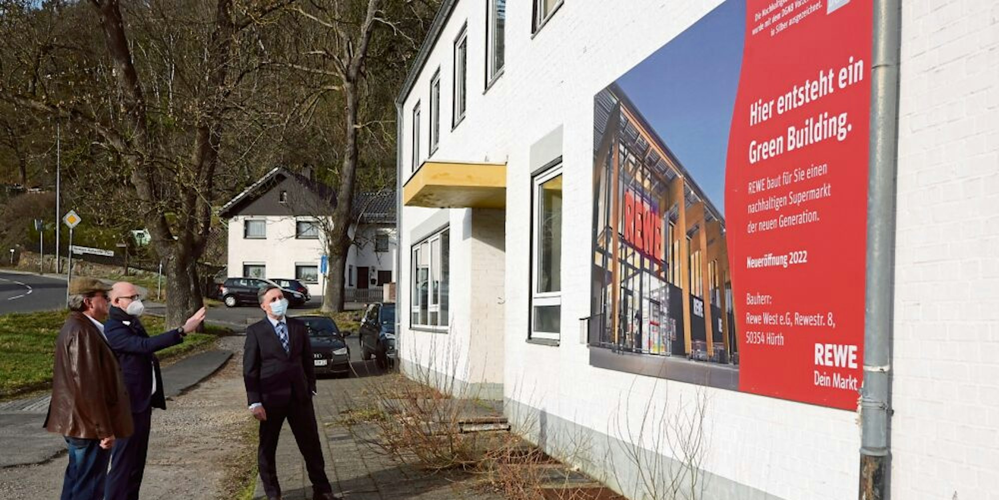Nun, 15 Jahre nach den ersten Ideen, ist Ingo Pfennings nach Ralf Hergarten und Udo Meister der dritte Bürgermeister, der sich mit dem Thema befasst. Und derjenige, der stolz verkündet: „Der Rewe kommt.“ Tatsächlich sprühen an diesem sonnigen Donnerstag alle Beteiligten nur so vor Optimismus, dass in diesem Sommer die Bagger anrollen und der Markt 2022 eröffnet wird – zu Ostern vielleicht, wenn alles ideal verläuft.