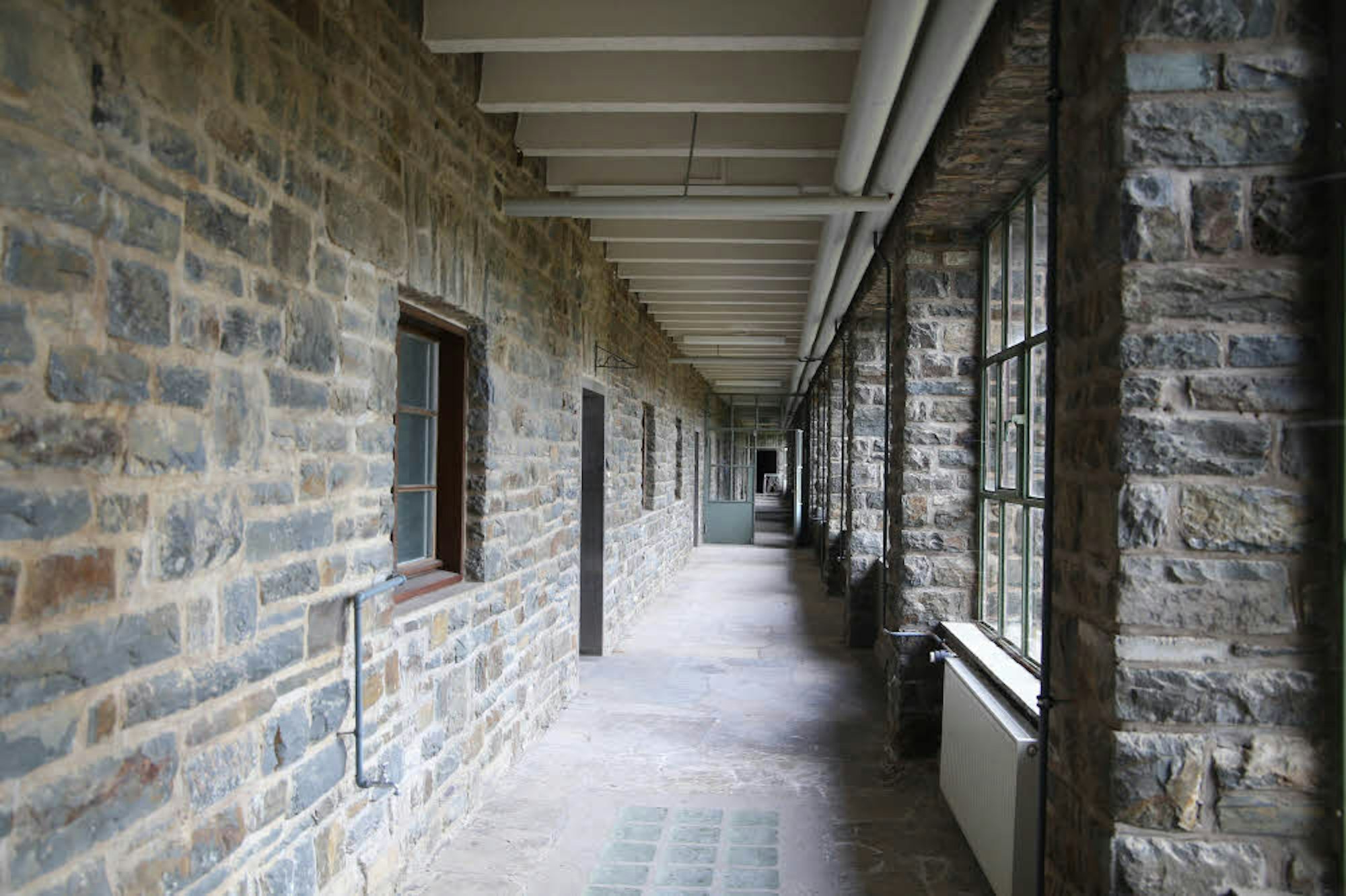 Was für eine Aufgabe auf sie zukommt, wird bei einem Rundgang durch die Räume und über das Gelände deutlich. Denn auch 3,3 Hektar Grundfläche gehören zum Komplex. Rund zwei Stunden dauert alleine eine oberflächliche Besichtigung der Räume. Gekauft hat die Familie den Bereich Malakoff-Ost. Von der B266 kommend sind das die auf der rechten Seite vor und hinter dem markanten Tor, das die Besucher in Vogelsang empfängt, liegenden Bereiche. Nicht dazu gehört auf der linken Seite Malakoff-West, in dem einst das Gefängnis untergebracht war.
