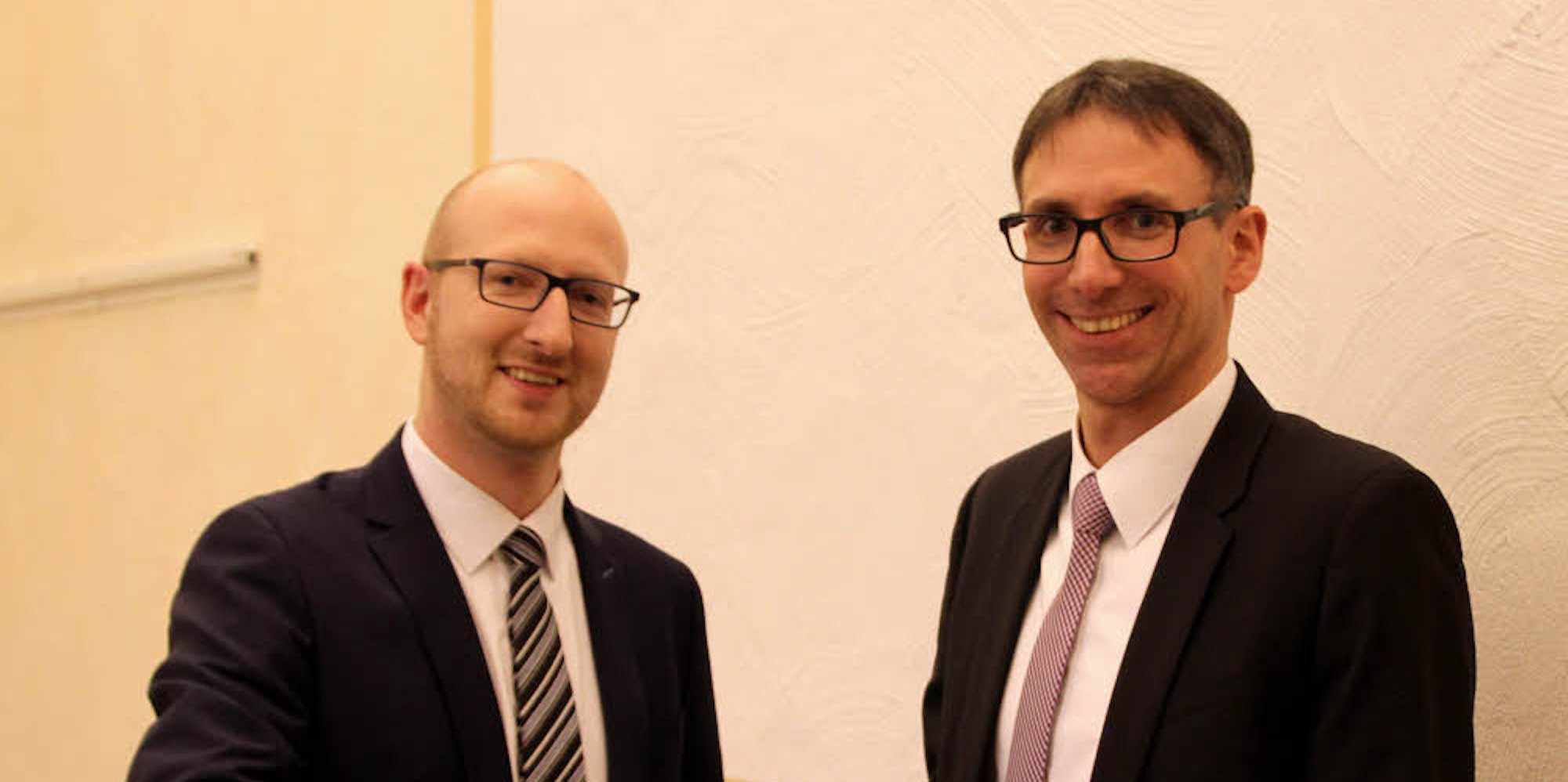 Das Schleidener Führungsduo: Zur Wiederwahl gratulierte Bürgermeister Ingo Pfennings (l.) dem Beigeordneten Marcel Wolter, der einstimmig bestätigt wurde.