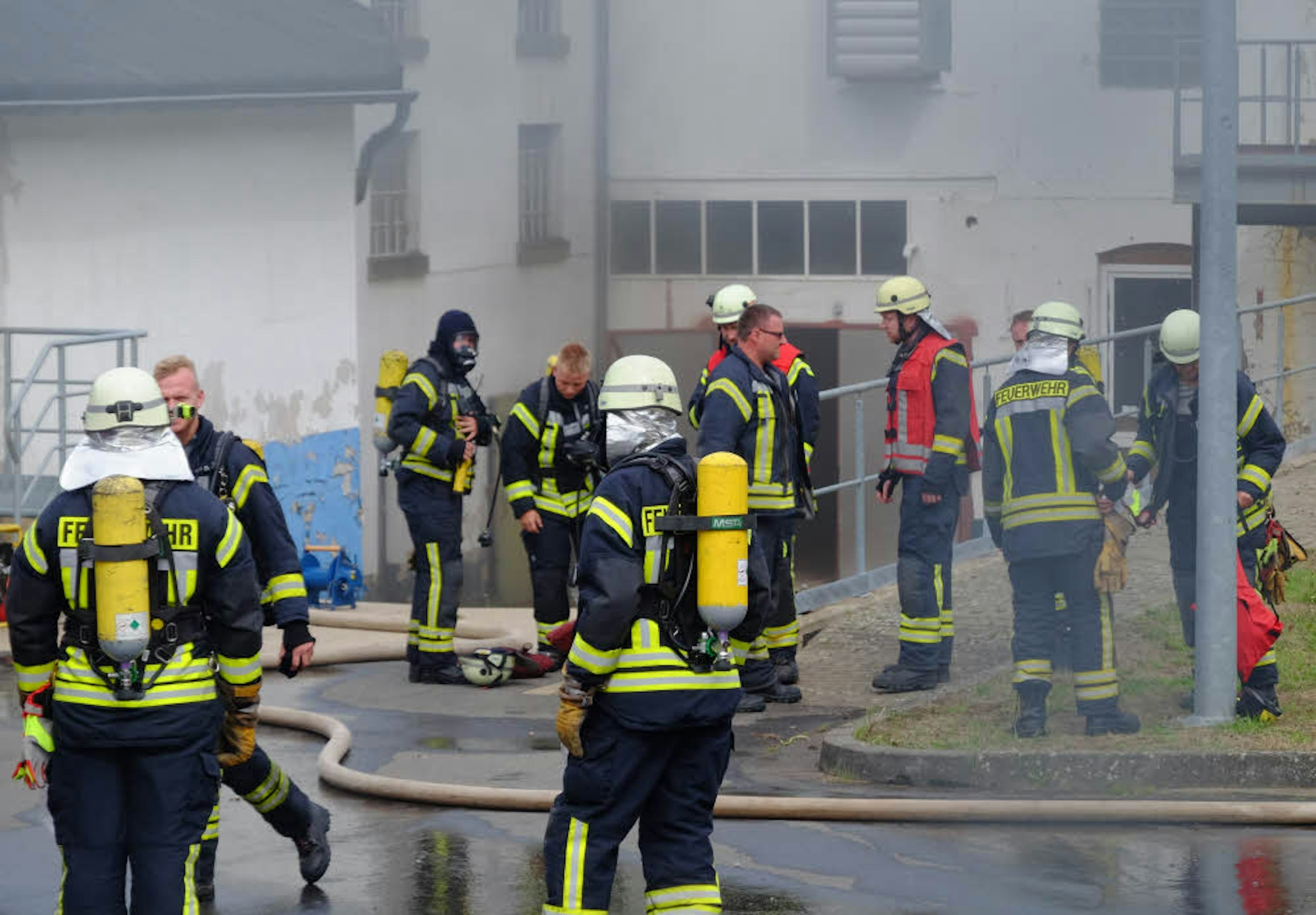 Mit Lüftern bliesen die Feuerwehrleute den Rauch aus dem Gebäude, andere nahmen mit speziellen Messröhrchen Luftmessungen vor und stellten fest, dass die Umgebung des Brandortes durch den Rauch nicht belastet worden war.