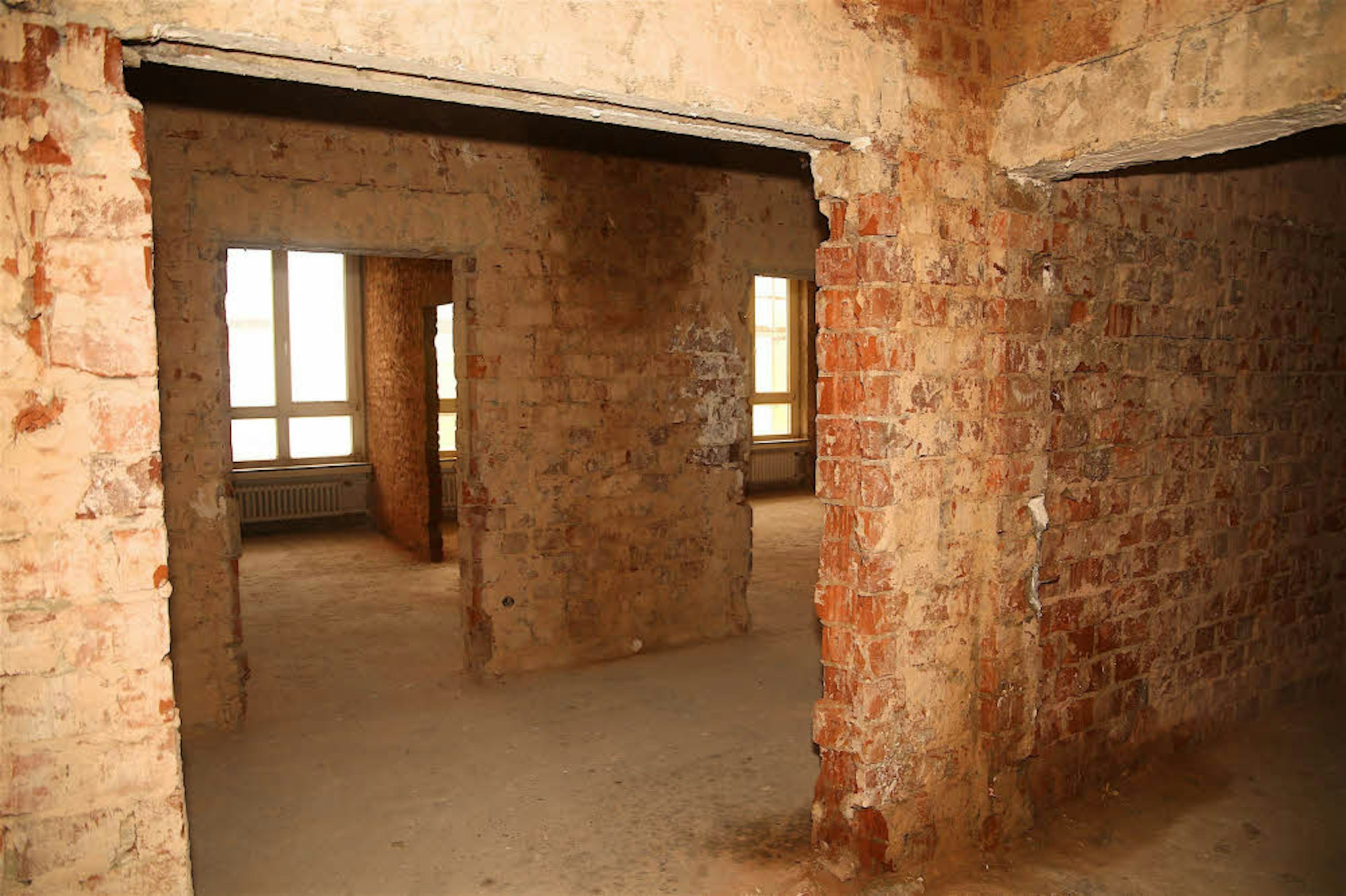 Einer Ruine gleicht der einstige Verwaltungstrakt. Nur die nackten Mauern stehen noch, die Trocknung wird Wochen dauern.