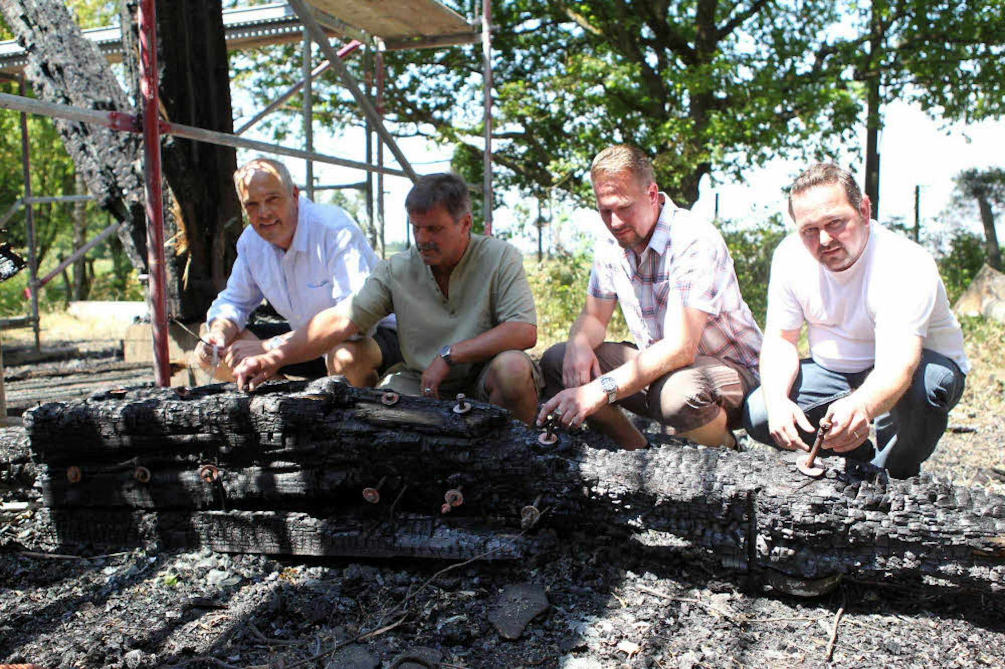 Die Wolfgartener Thomas Steffen (v.l.), Gerd Schmitt, Oliver Kruff und Ralph Schorn trauern um den Turm.