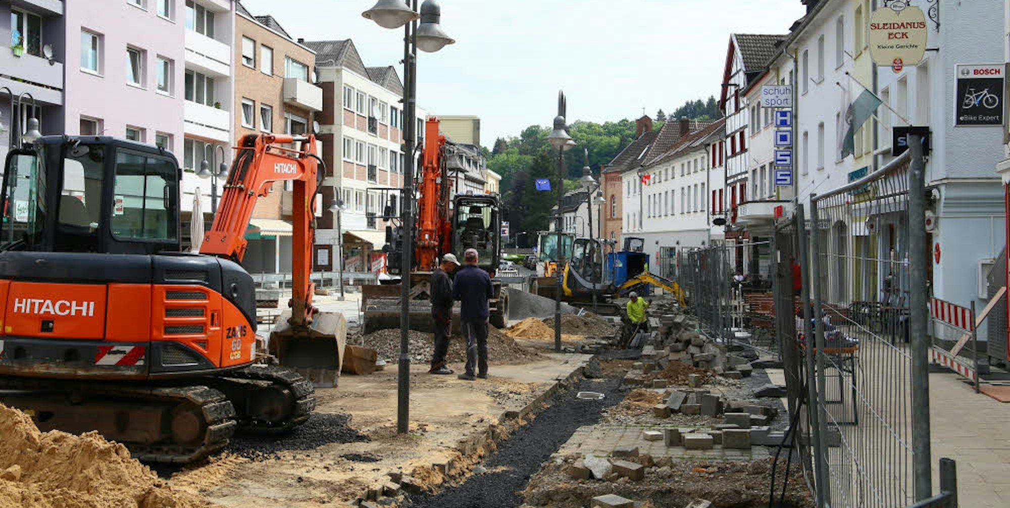 Schleiden – „So wie das aussieht, gibt das hier kein Roggendorf 2“, sagt der Schleidener Metzgermeister Elmar Scholzen mit Blick auf die Baustelle Am Markt direkt vor seiner Tür. Im Gegensatz zu den Anliegern der B 266, die lange auf die Fertigstellung der Straße warten mussten, ist er sehr zufrieden mit dem Fortschritt der Arbeiten zur Umgestaltung der Schleidener Innenstadt.