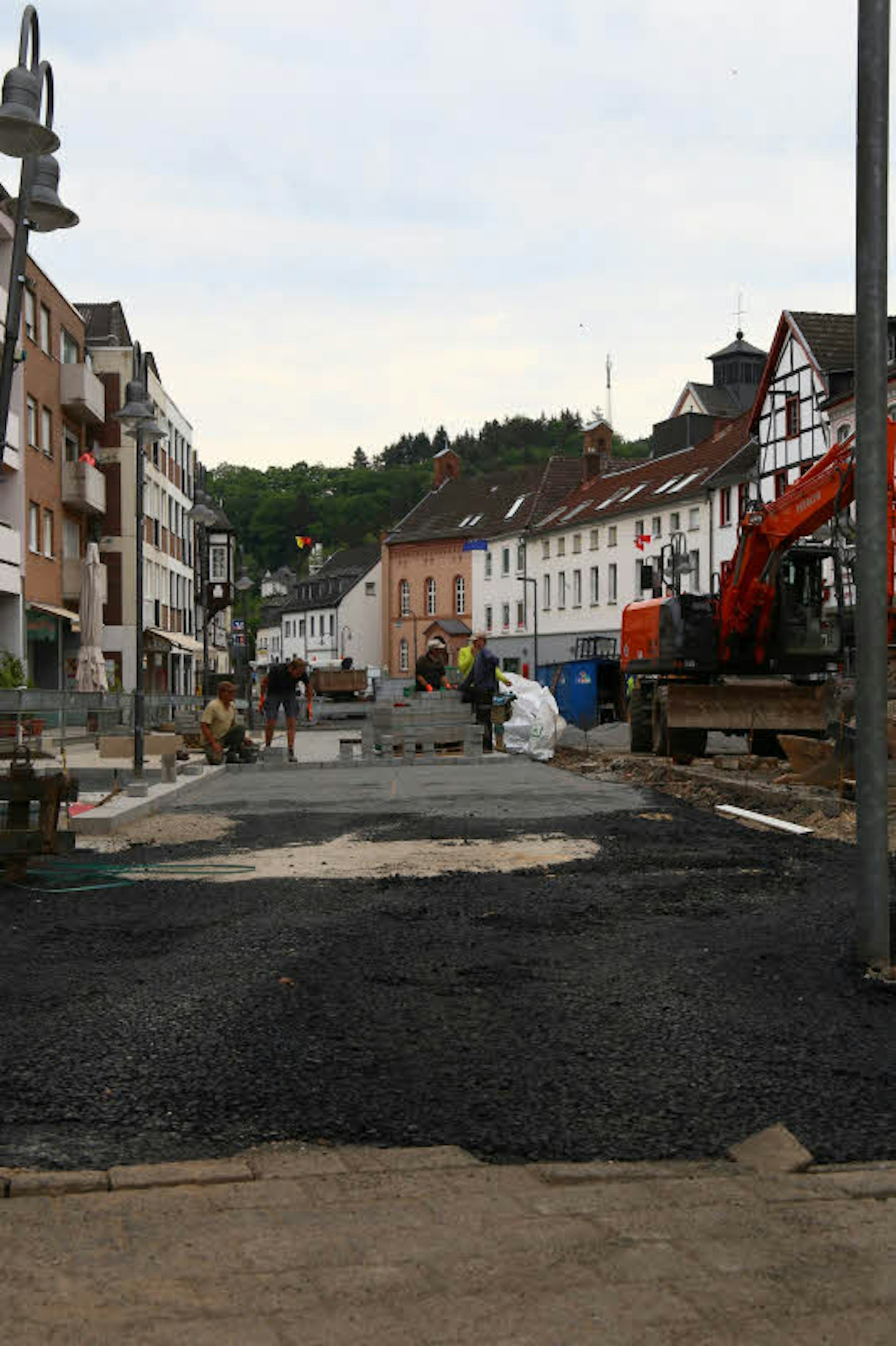Auf die Frage, wie es für die Männer der Baufirma denn so läuft, antwortet Schachtmeister Horst Stoff: „Wunderbar. Ich kann mich nicht beklagen. Wir wollen, dass es so wenig Belästigungen gibt wie möglich. Jetzt versuchen wir, den Platz in der Mitte komplett fertigzustellen, damit die Schleidener wieder einen sauberen Markt haben.“