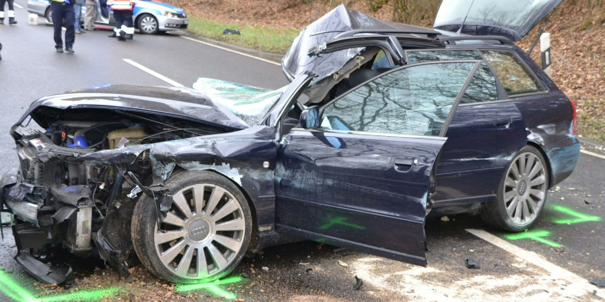 Schleiden-Herhahn – Eine hohe Geschwindigkeit, sowie eine schwer einsehbare Kurve, führten am vergangenen Samstagnachmittag zu einem Verkehrsunfall mit Todesfolge. Gegen 14.45 Uhr war der 37-jährige Fahrer eines dunkelblauen Audis, gemeinsam mit seinem elf Jahre älteren Bruder auf der B266 aus Gemünd kommend in Richtung Herhahn unterwegs. Laut ersten Polizeiaussagen fuhren sie in hohem Tempo in eine Rechtskurve und übersahen dabei die Wagenkolonne, die auf Grund eines voranfahrenden Traktors wesentlich langsamer unterwegs war. Der Fahrer versuchte zu bremsen und geriet dabei auf die Gegenfahrbahn wo er mit einem entgegenkommenden Lieferwagen zusammenstieß. In der Folge kollidierte das Fahrzeug mit einer solchen Wucht mit der Leitplanke, dass zwei Stützpfosten brachen. Die komplette Beifahrerseite des Audis wurde eingedrückt und das Dach auf die Hälfte seiner ursprünglichen Größe zusammengestaucht.
