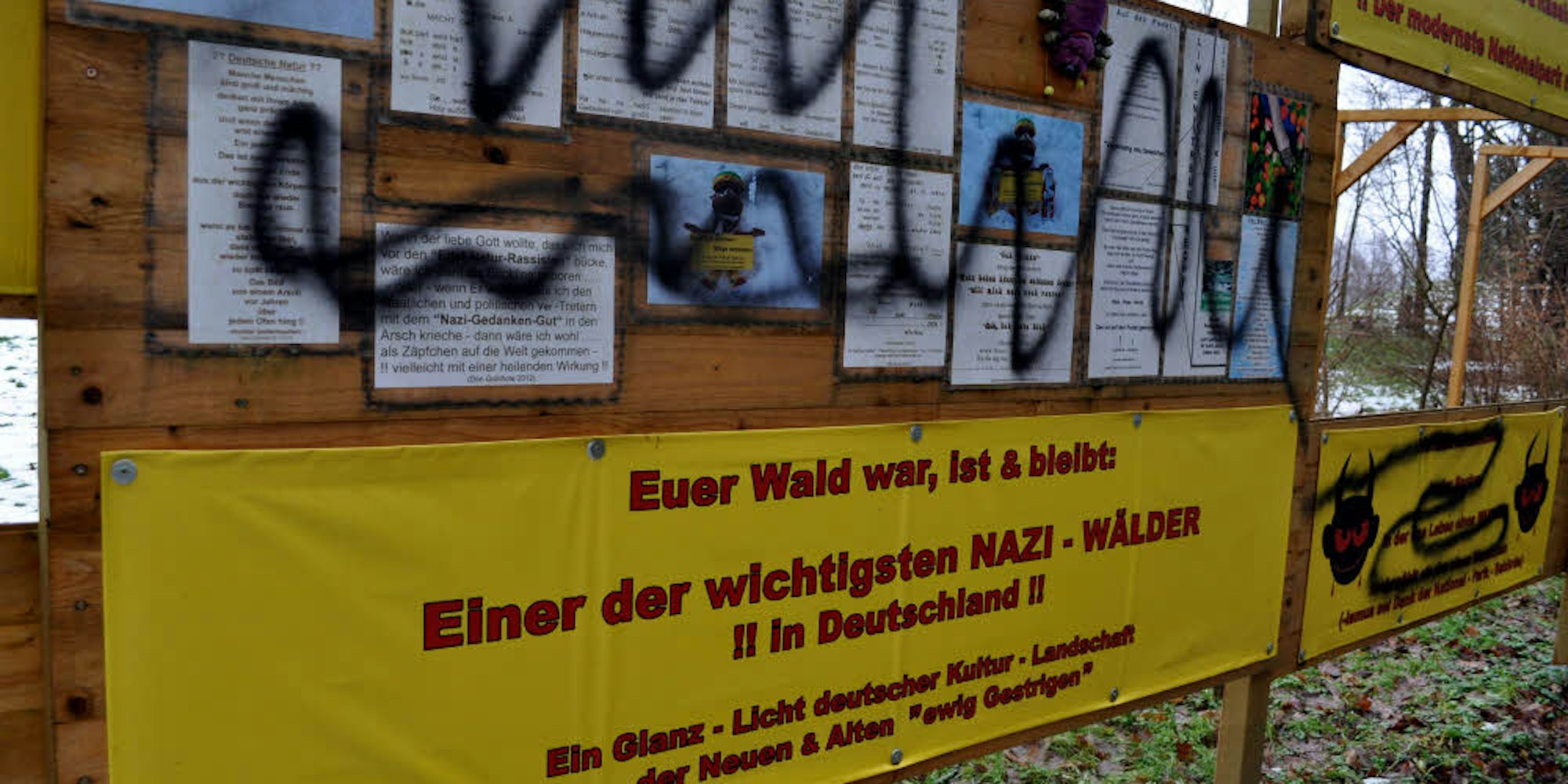 Spaziergänger, die zum Nationalpark wollten, kamen an diesen Schildern in Wolfgarten vorbei.