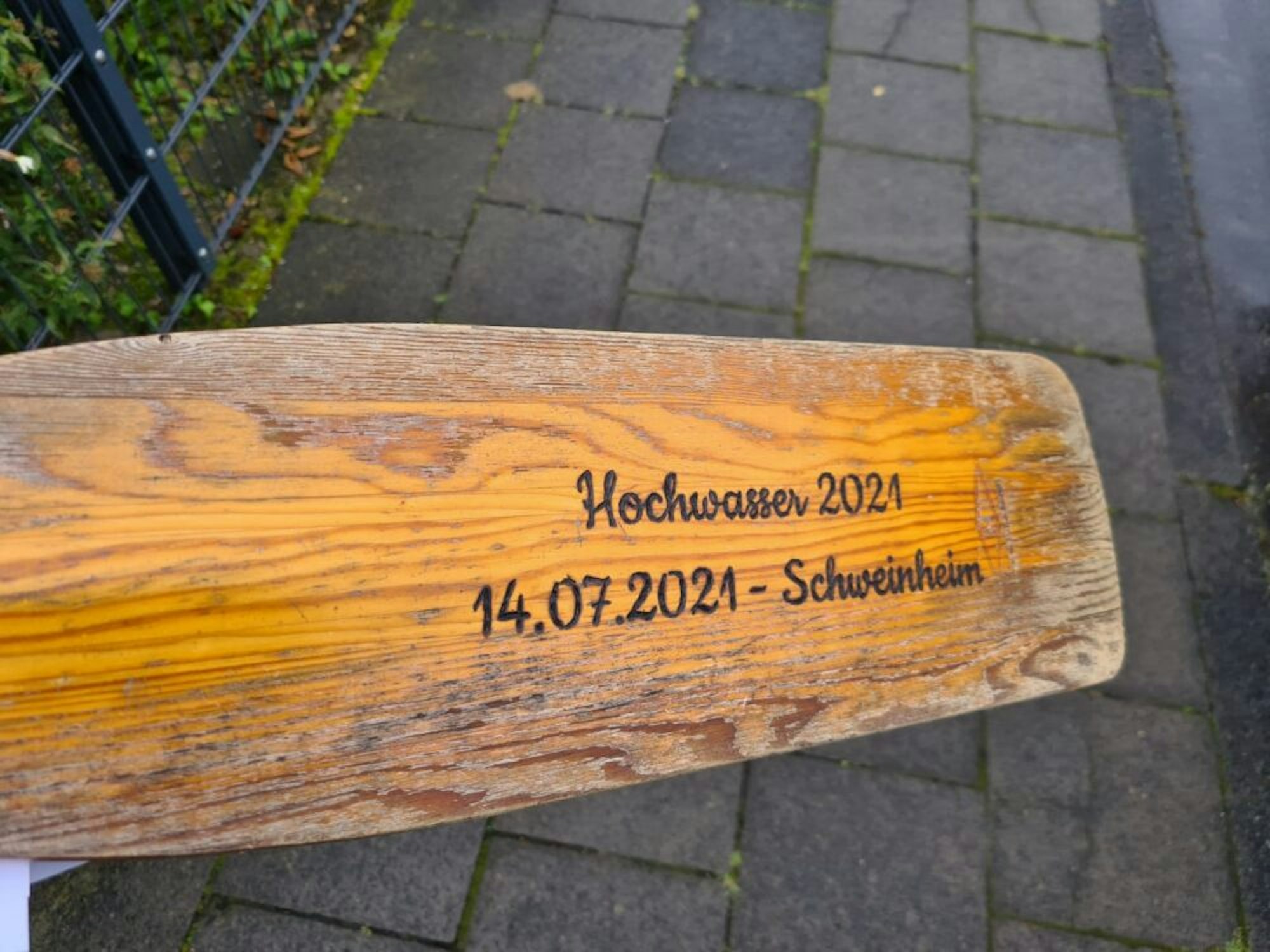 Das wiedergefundene Paddel ist nun ein Erinnerungsstück.