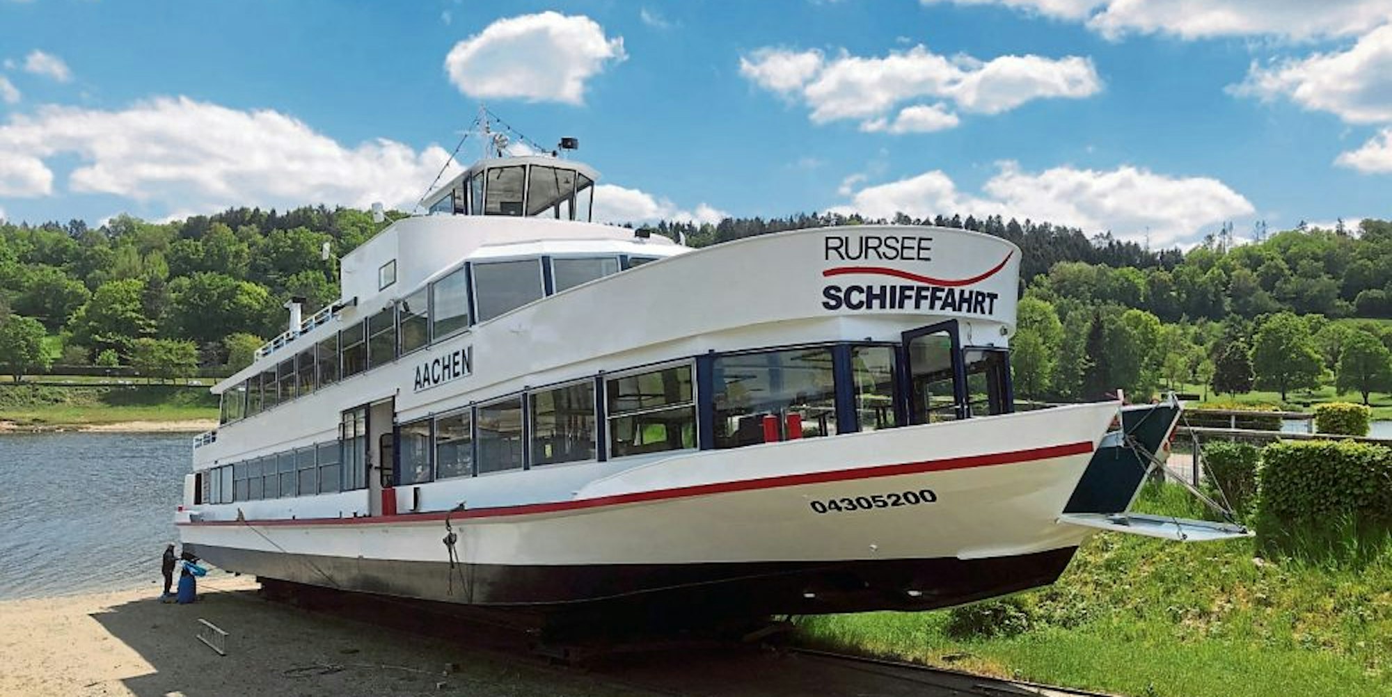 Als nicht ganz so einfach wie erhofft erwies sich dagegen das Vorhaben der Rurseeschifffahrt, die „Aachen“ nach der Zeit im Trockendock wieder dorthin zu bringen, wo sie eigentlich hingehört. Erst im zweiten Anlauf konnte das Schiff zu Wasser gebracht werden.