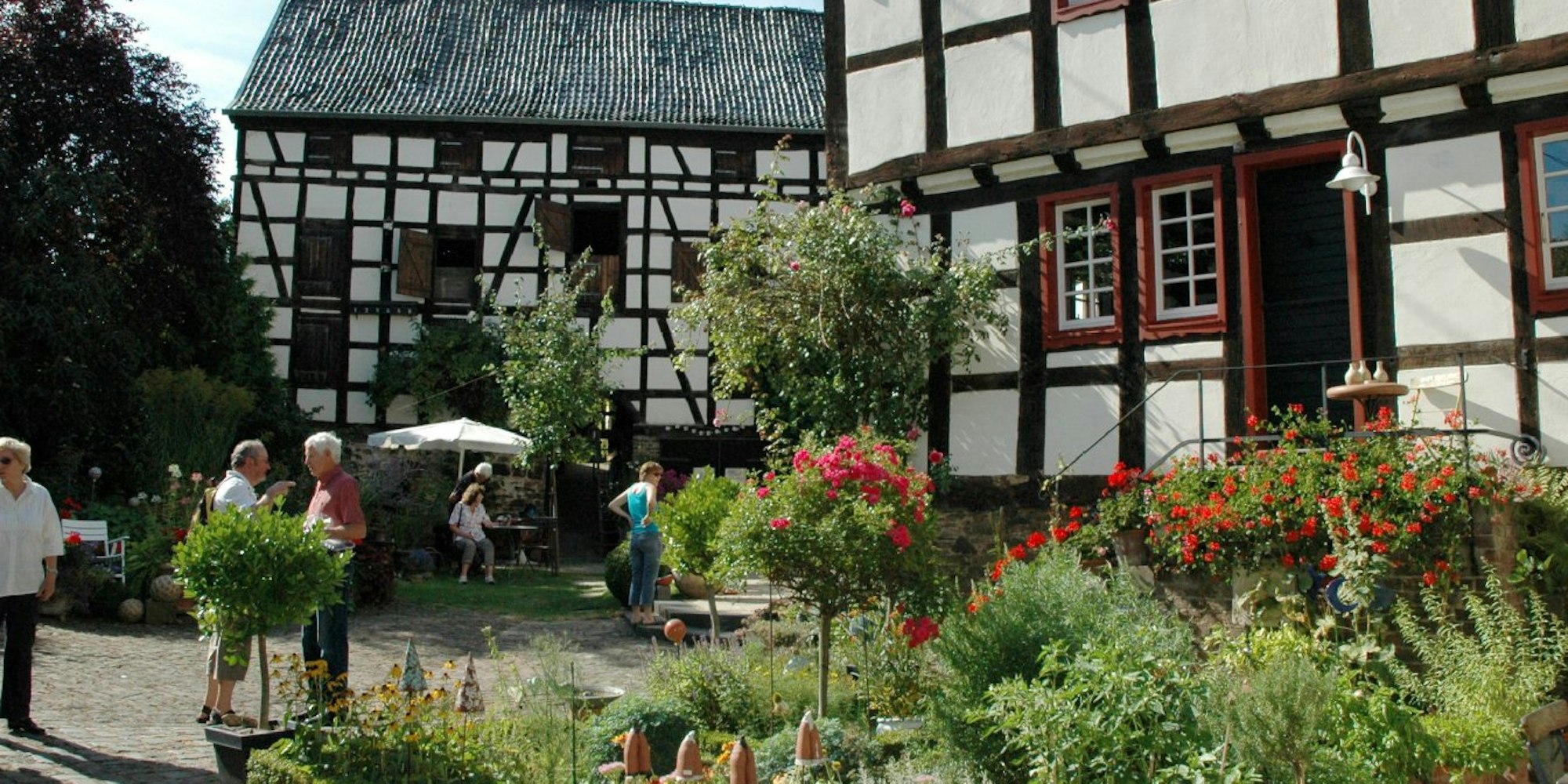 Kombiniert wird das Fachwerk der Fassade im Innenhof mit einer modernen Gartengestaltung, die das Ehepaar Ulla Schmitz-Kühl und Ludwig Schmitz selbst vornimmt. „Meine Frau hat die Ideen und ich führe sie aus“, erklärte der gelernte Landwirt. Eine „sichere Arbeitsstelle“ sei das ehemalige Handelshaus, das sie 1971 übernommen haben.