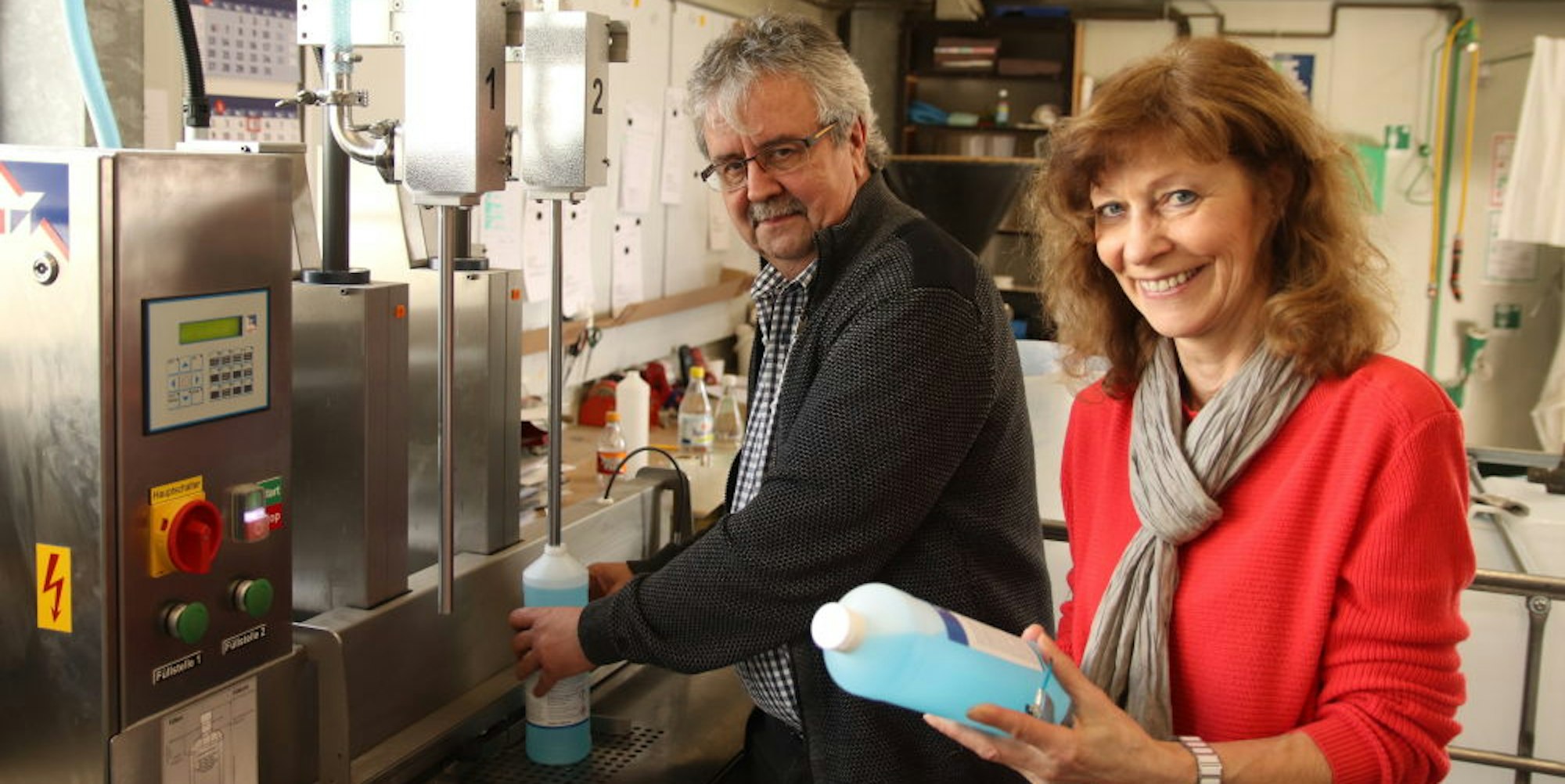 Stellen nun Desinfektionsmittel her: Hans Linden und seine Ehefrau Gisela.