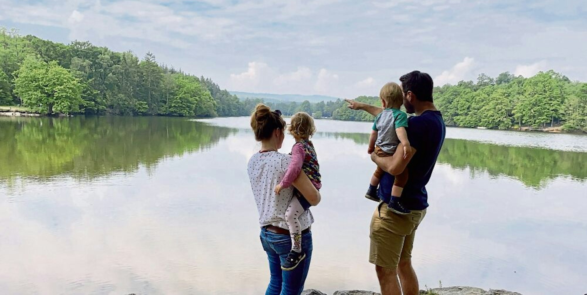 „Das ist die kinderfreundlichste Kurzwanderung, die wir kennen“, erzählt Dreesbach weiter, während sie den geländetüchtigen Buggy mit extra großen Rädern der beiden Kinder schiebt. Dadurch, dass der Gehweg auf der gesamten Strecke asphaltiert ist, würde die Wanderung aber auch mit einem normalen Kinderwagen gut funktionieren. „Manchmal nehmen wir für Maila auch das Laufrad mit, das geht hier auch gut“, fügt die 32-Jährige hinzu.