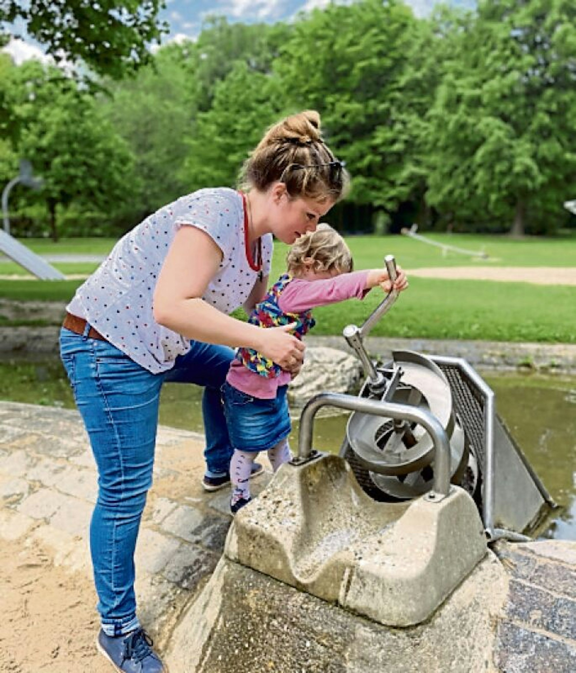 5: Führt der Weg am Wasser vorbei, hat Patricia Dreesbach mit zwei Kindern immer gerne eine zusätzliche Aufsichtsperson dabei. Wenn ihr Mann keine Zeit hat, fragt sie ihre Mutter. „Mit zwei Kindern kann man nie Augen genug haben.“ (smh)