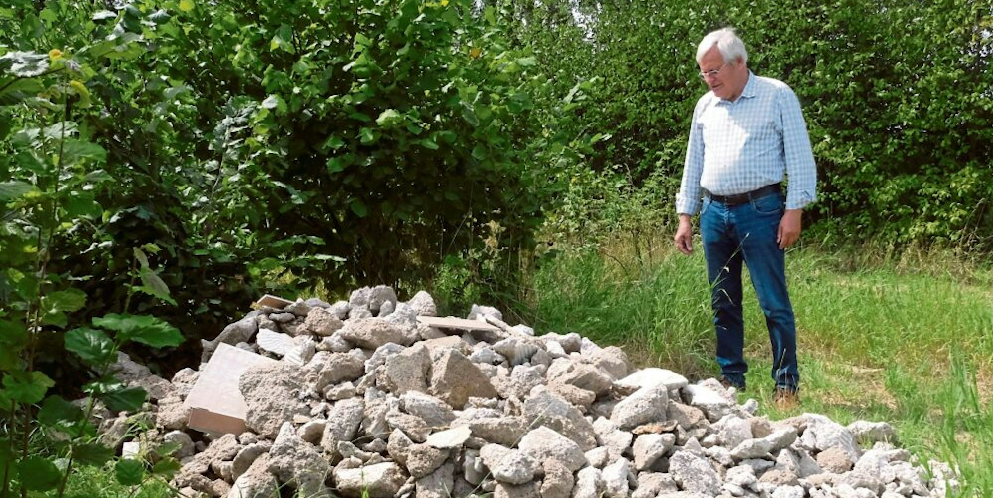 Gegen Blicke vom Wirtschaftsweg geschützt: Heinz Oberrem entdeckte den Bauschuttberg bei Bodenheim.