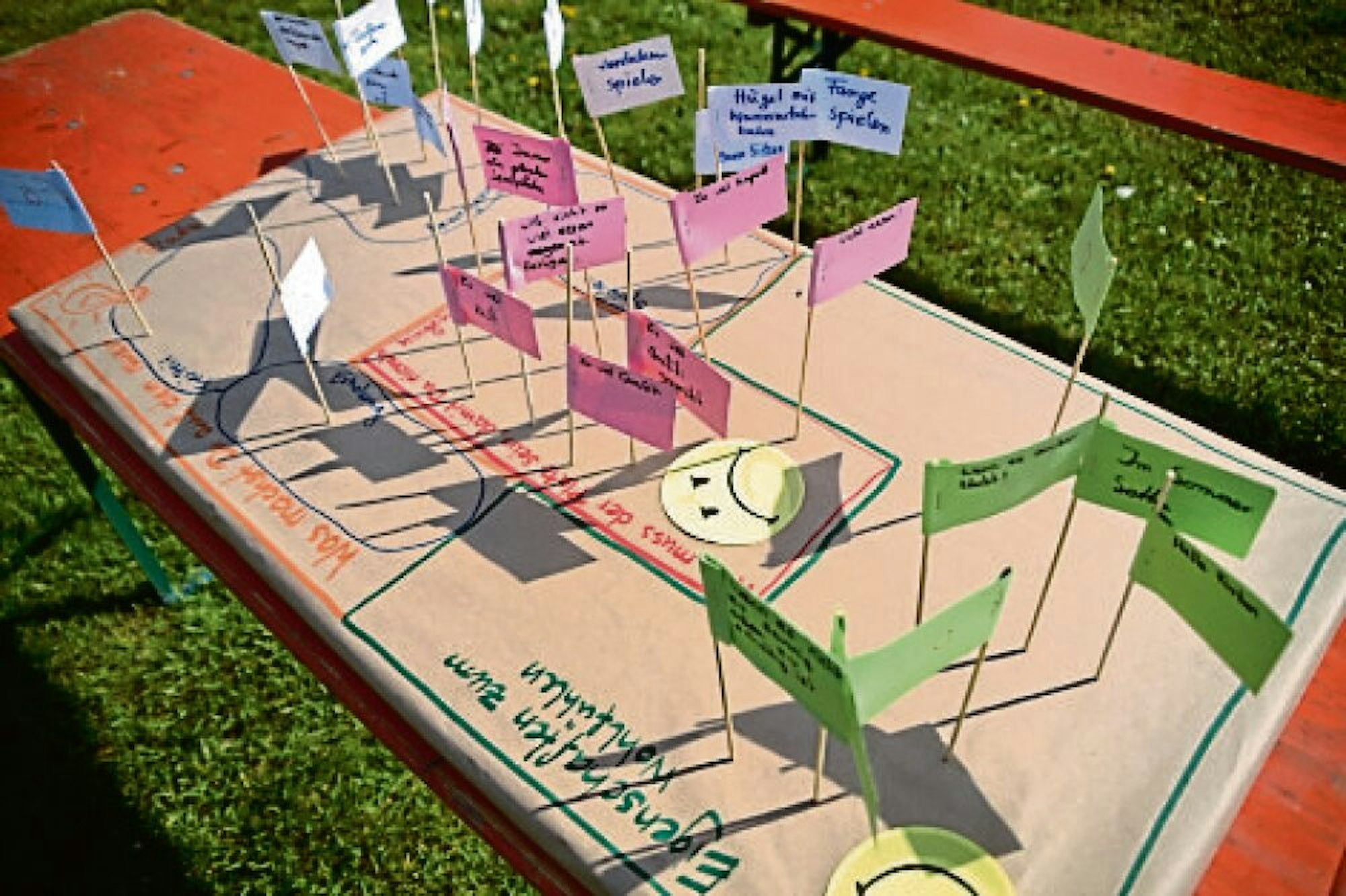 Auf farbigen Fähnchen wurden die Ideen notiert.