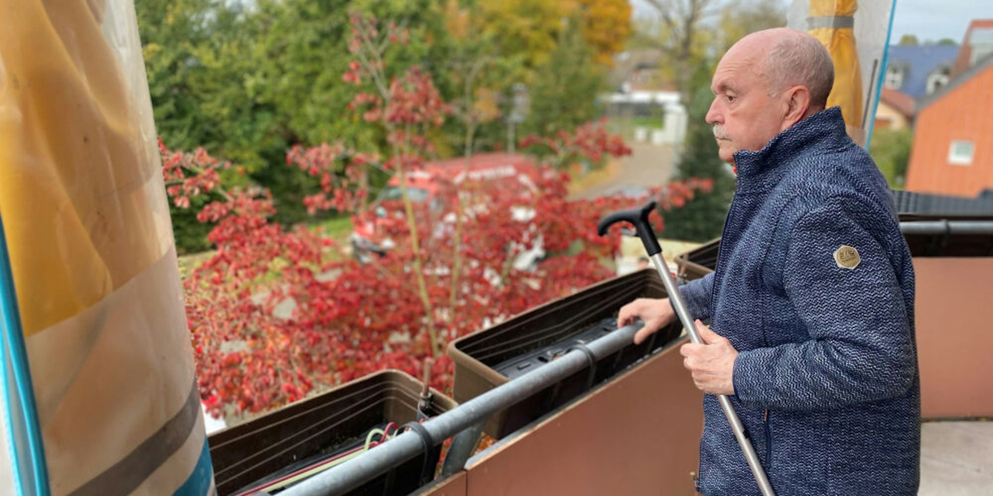 Seit einem schweren Schlaganfall im Wanderurlaub 2019 sind kleinste Anstrengungen für den 74-jährigen Rentner eine Herausforderung. Passiert etwas Ungeplantes, streikt seine linke Körperhälfte. Das Gehen mit dem Stock wird noch schwieriger. So wie während der Flutkatastrophe.