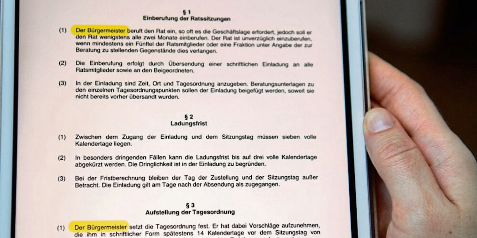 In der Geschäftsordnung des Rates geht man sprachlich von einem männlichen Gemeindeoberhaupt aus, obwohl der „der Bürgermeister“ seit Jahren eine Frau ist.