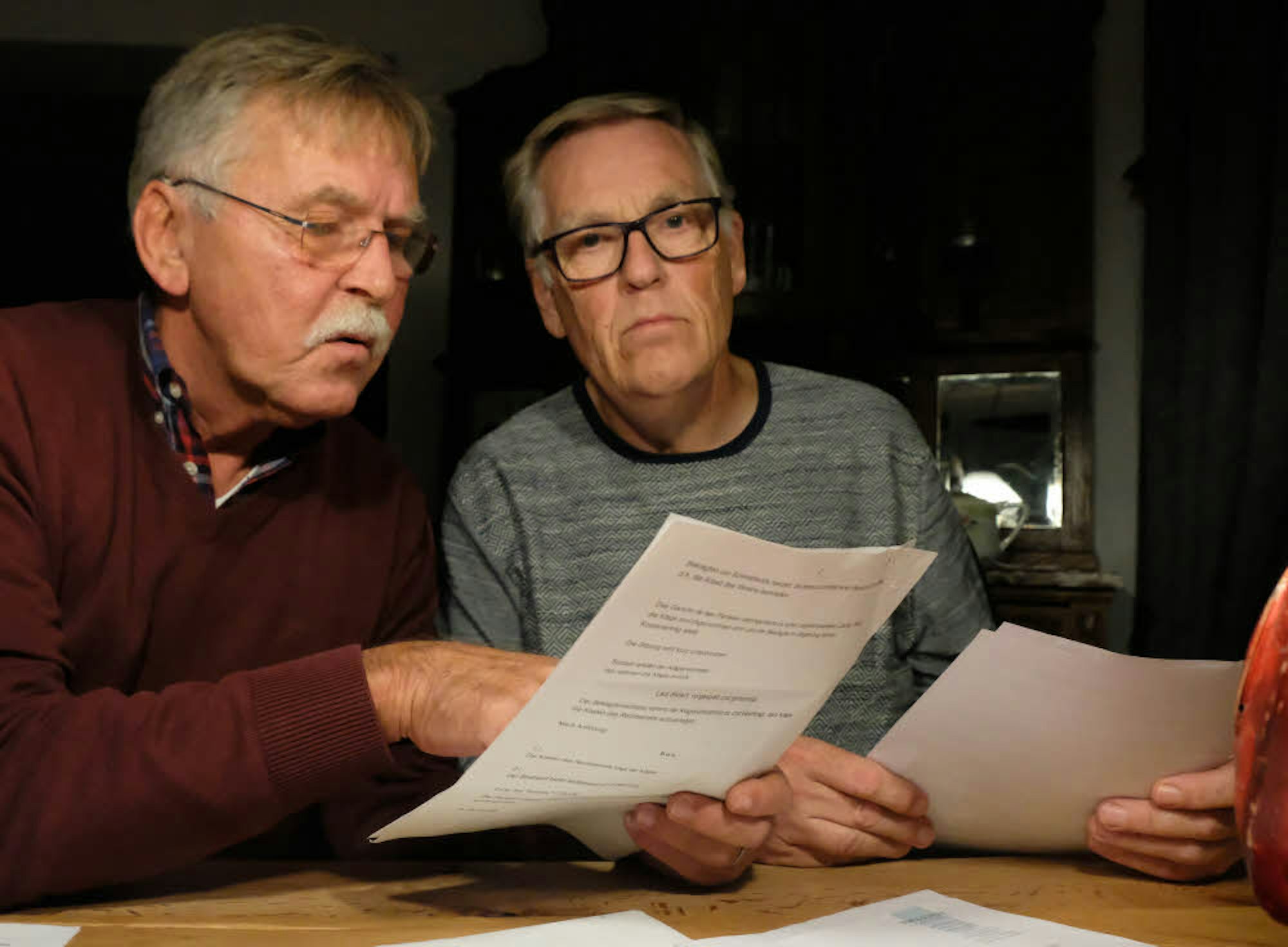 Studieren die Unterlagen des Gütetermins, der mit einem Vergleich zugunsten der Beklagten endete: Heinz Lawrenz und Udo Hoffmann.