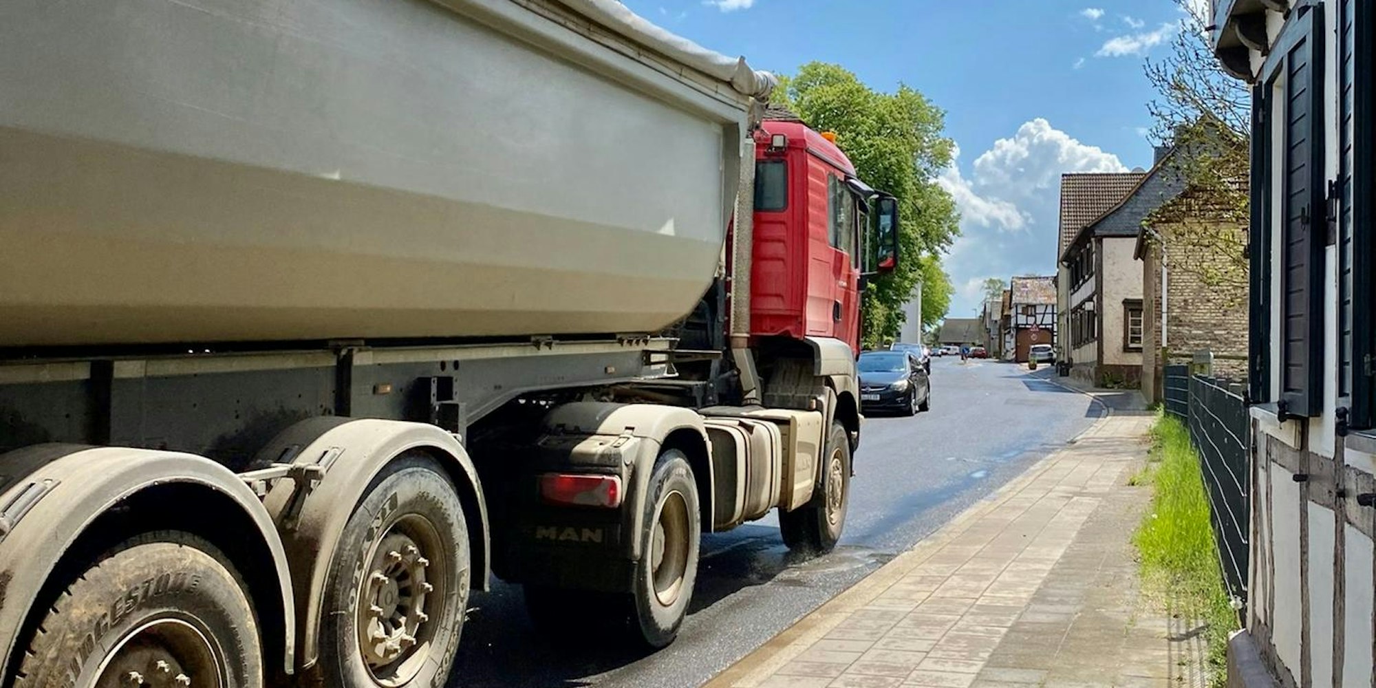 „Was wurde von der Politik nicht alles geplant, diskutiert, versprochen und wieder verworfen“, heißt es. Lärm, Schmutz und Gefährdung für Leib und Leben seien an der Tagesordnung, wenn die Lkw über die Rheinbacher Straße in Müggenhausen nur wenige Meter am Kindergarten vorbei donnerten.