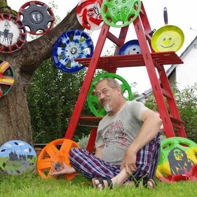 Auch sein Zuhause in Wißkirchen wird regelmäßig mit neuen Ideen künstlerisch gestaltet. Kein Objekt hat einen Namen: „Ich möchte nichts vorgeben. Der Betrachter soll sich selbst einen Reim machen.“ Das ist Rhiem wichtig. Seine Kunst dient nicht der Belehrung oder der Moral. Sie hat ihn bewegt und wird vielleicht den Betrachter in irgendeiner Weise ansprechen.