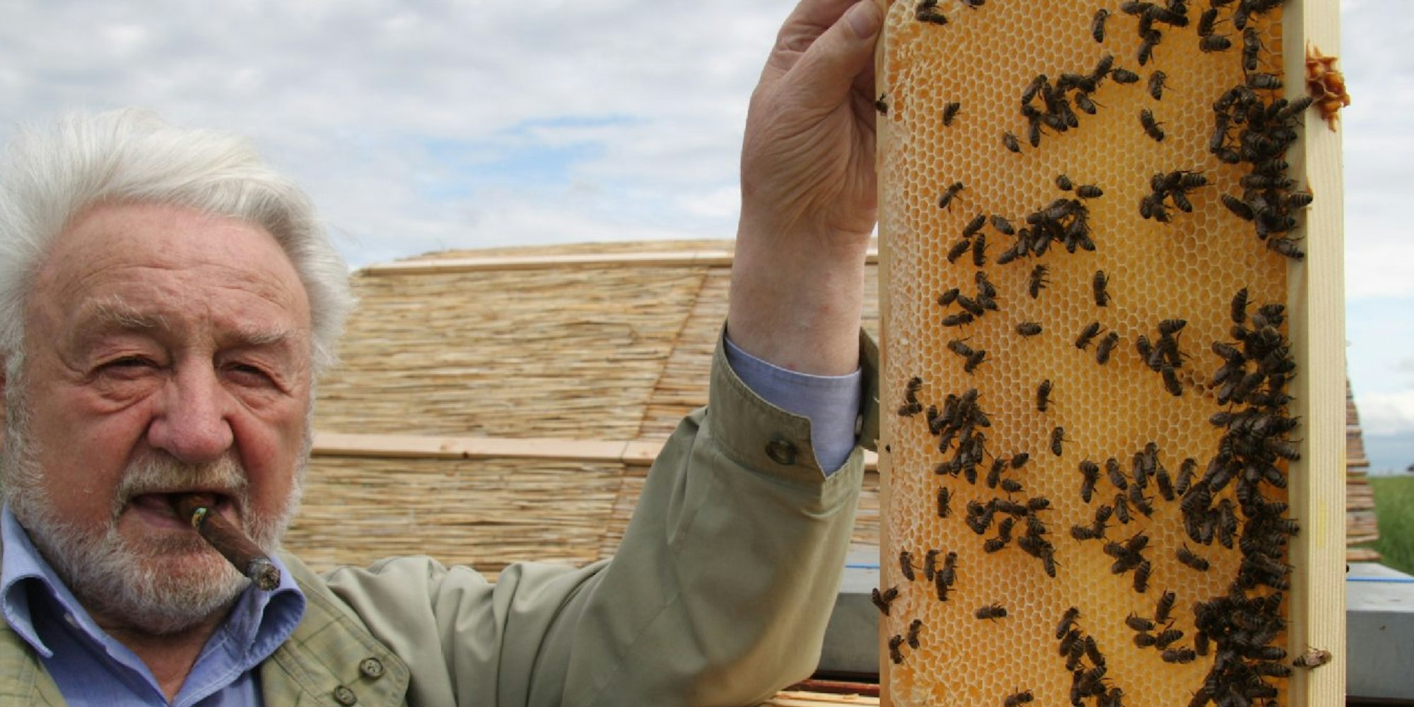 Imker Otto Tönnes raucht Zigarre, wenn er seine Bienenstöcke öffnet.