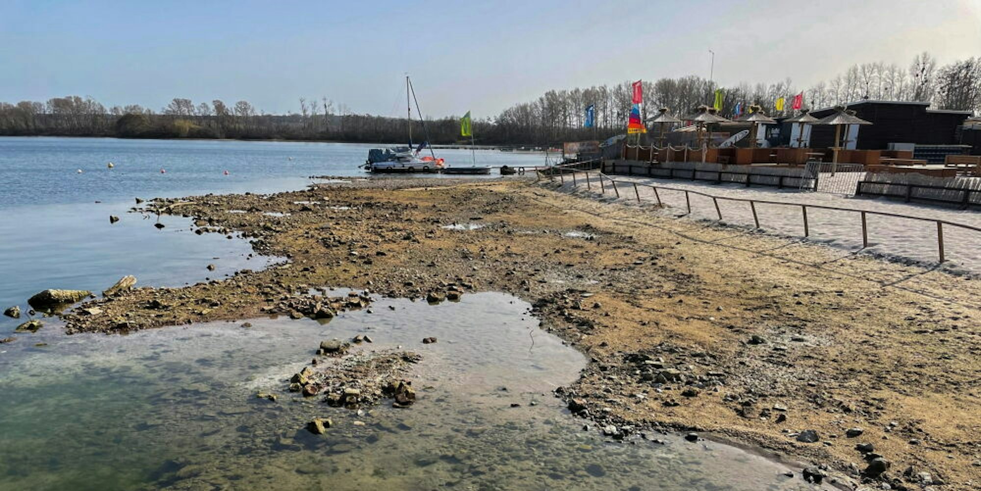 Dass der Zülpicher See sich immer weiter zurückzieht, ist schon länger bekannt. Mehr als 60 Zentimeter Wasser hat er bereits verloren, wie schon im März berichtet. Die Ursachen für den Rückgang sind noch ungeklärt, möglicherweise können heiße Sommer oder die Entstehung des Sees durch den Tagebau dafür verantwortlich sein.