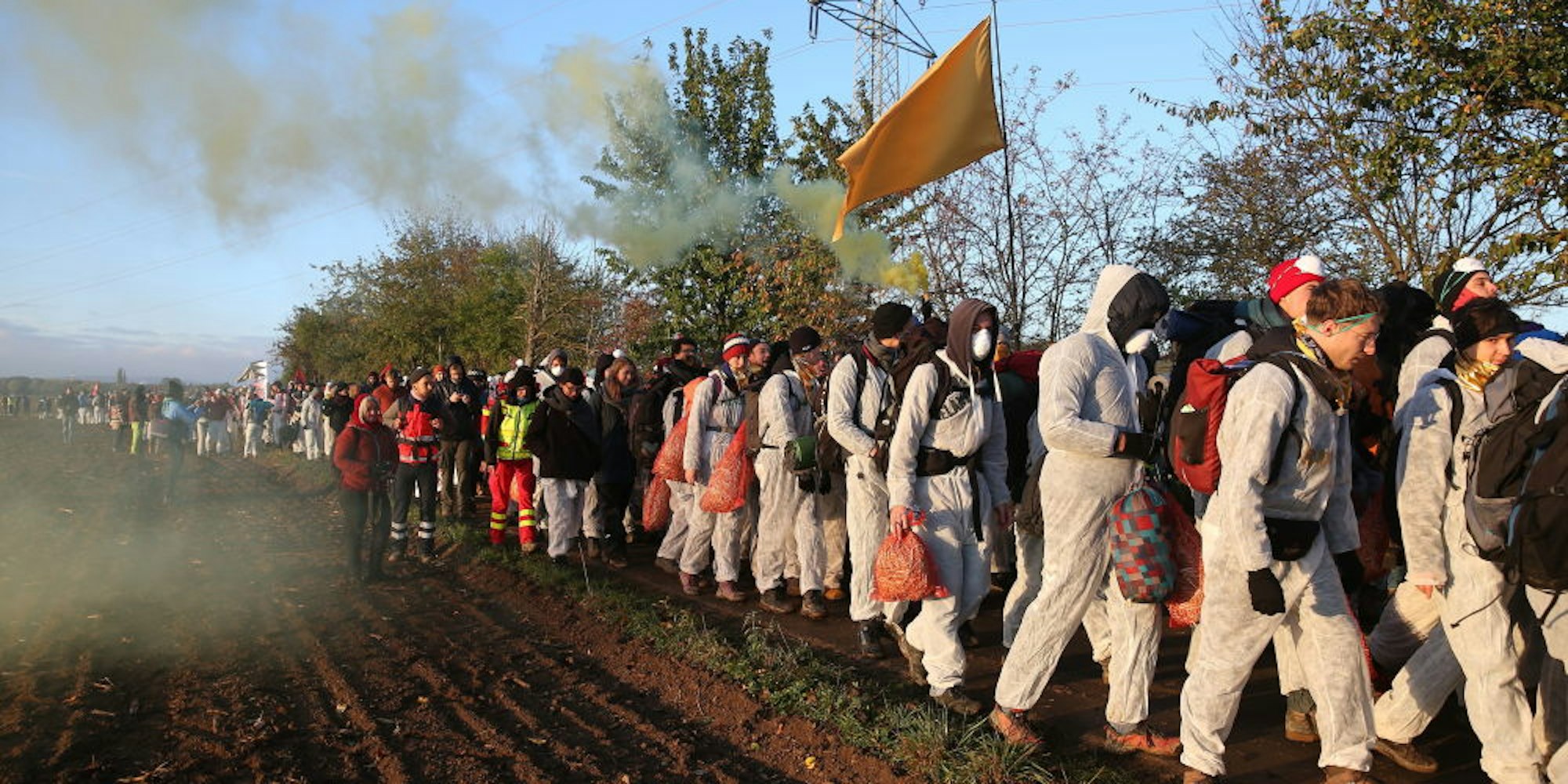 Mitglieder der Bewegung „Ende Gelände” sollen unter anderem Polizisten im Hambacher Forst mit Kot beworfen haben, werfen NRW-Politiker ihnen vor.