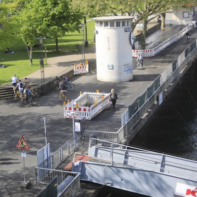 Die Rheinfähre Mondorf erreicht gerade den Anleger von Bonn-Graurheindorf. Ein paar Fußgänger, Rad- und Autofahrer haben schon gewartet. In Richtung Bonn haben einige Angler ihre Ruten aufgestellt und hoffen auf Bisse. Aber Achtung, die Herren, Zander und Hechte haben Schonzeit.