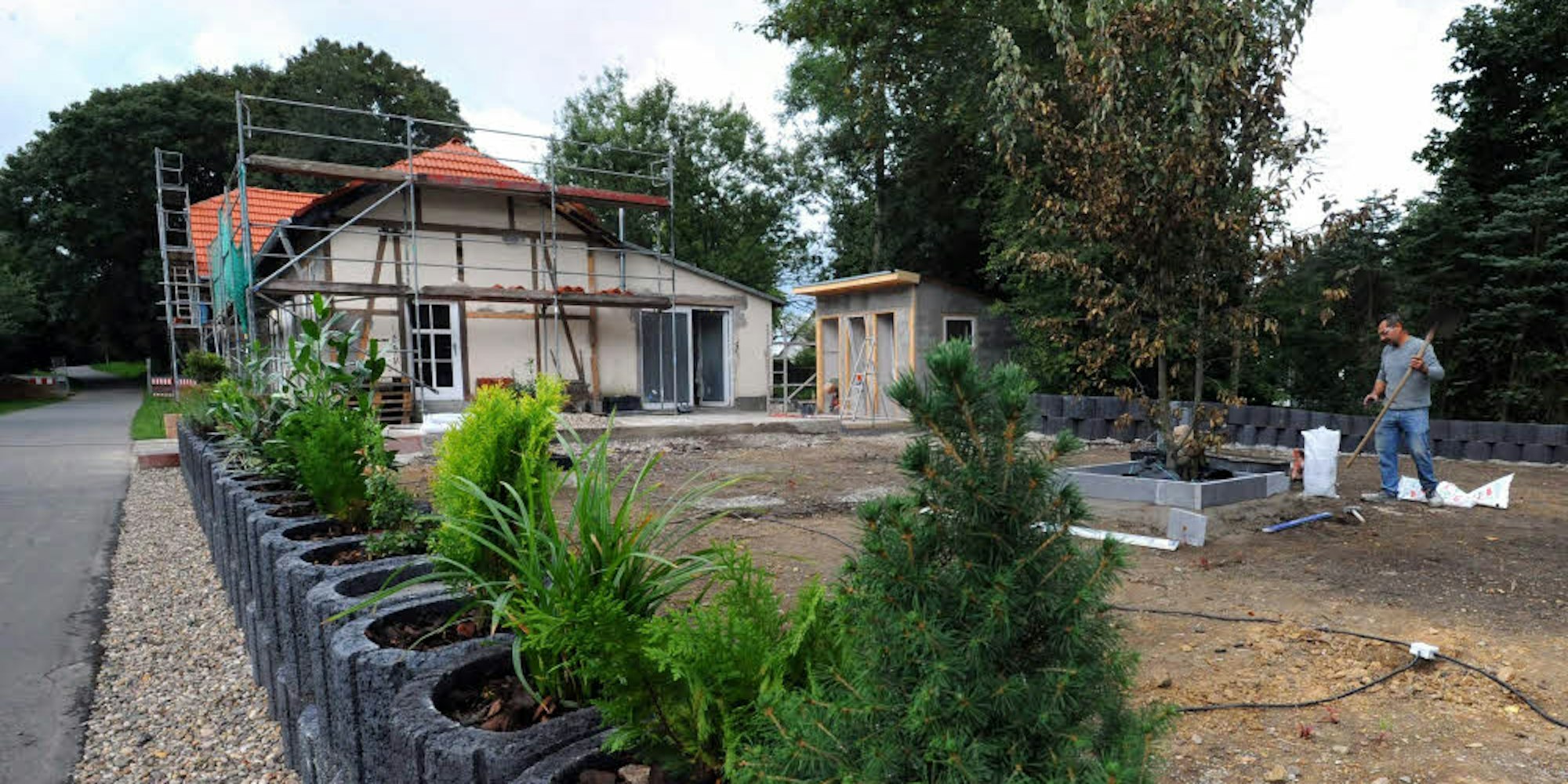 Die Fassade wird noch geschliffen und gestrichen und schon bald soll das Gerüst verschwinden. Der Biergarten wird angelegt.